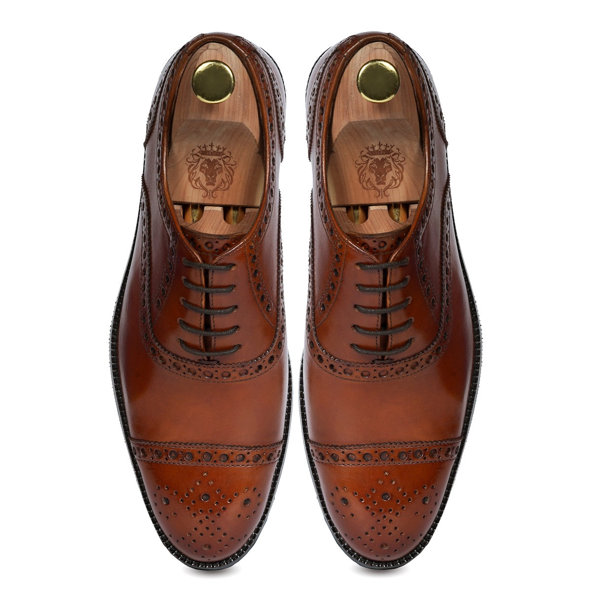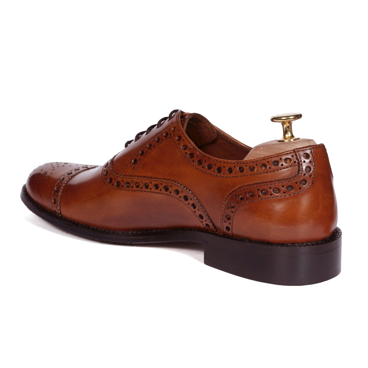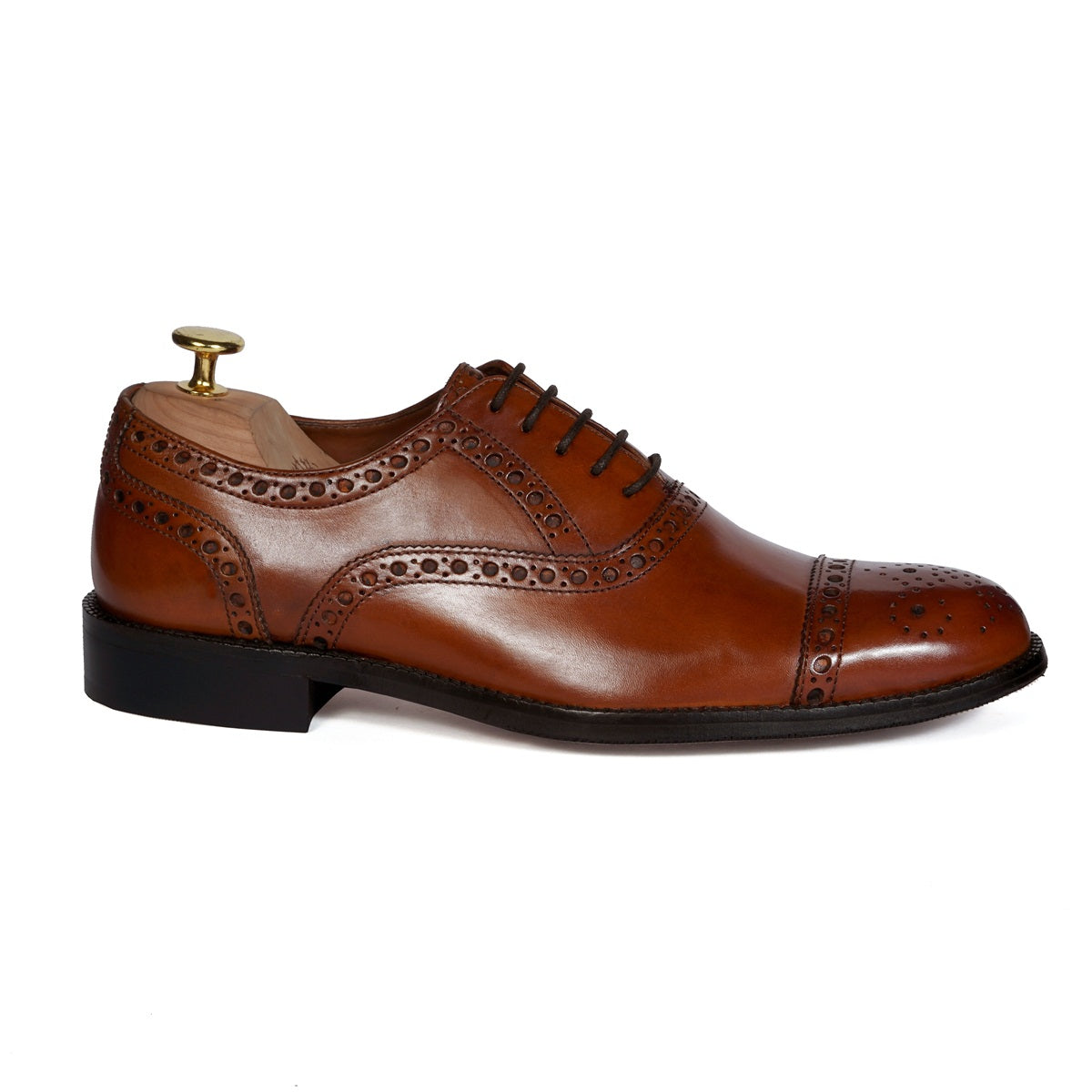 Punching Brogue Oxford Lace-Up Shoe For Men in Genuine Tan Leather