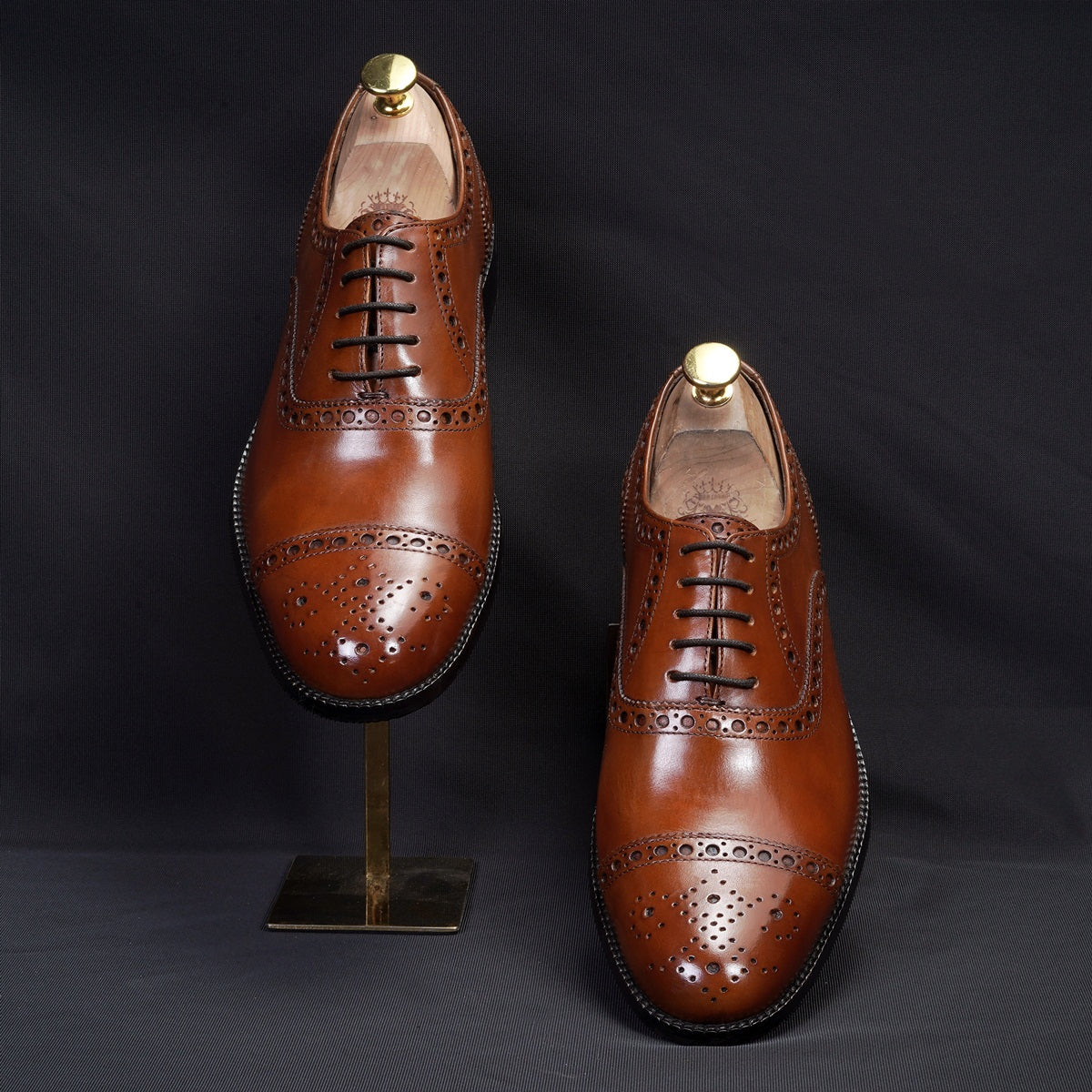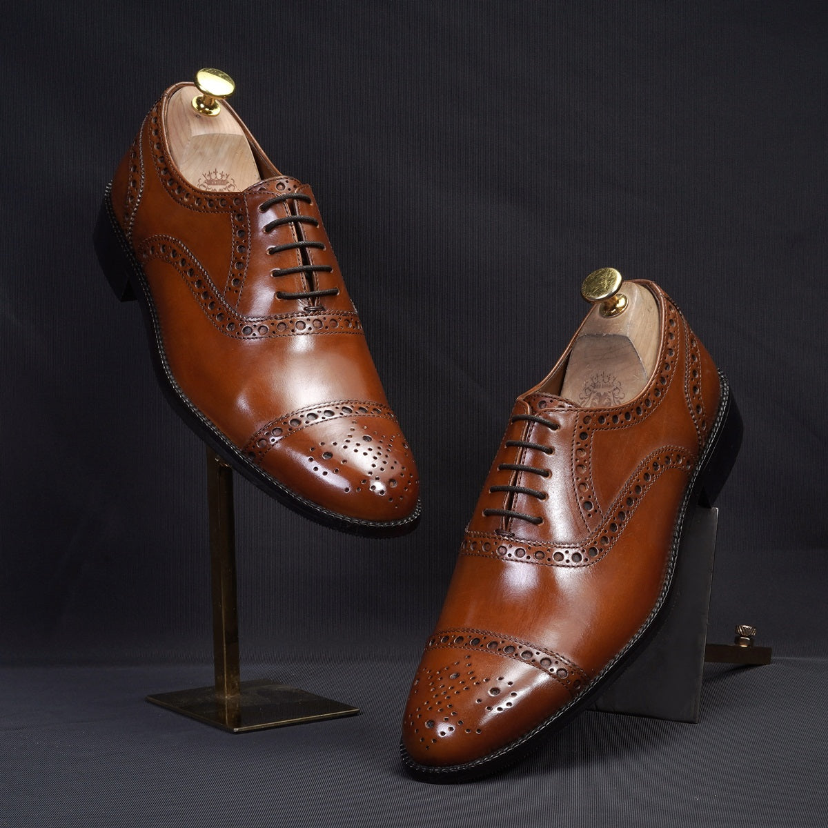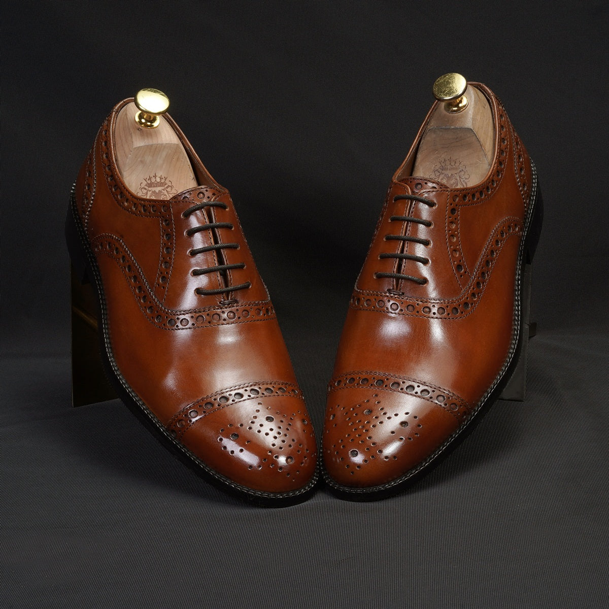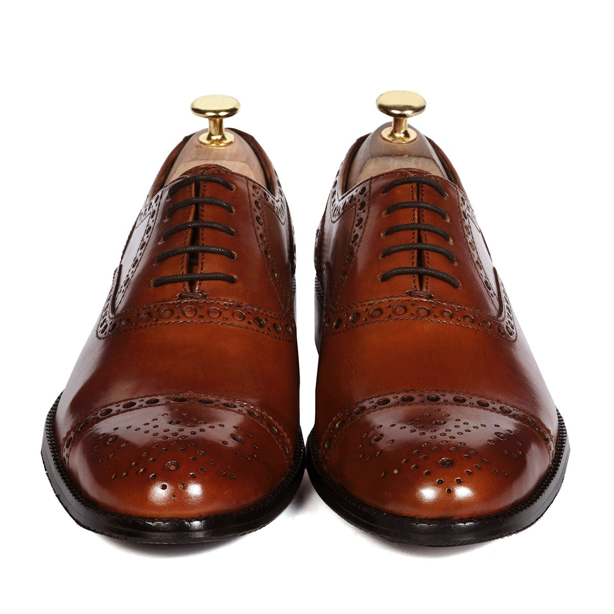 Punching Brogue Oxford Lace-Up Shoe For Men in Genuine Tan Leather