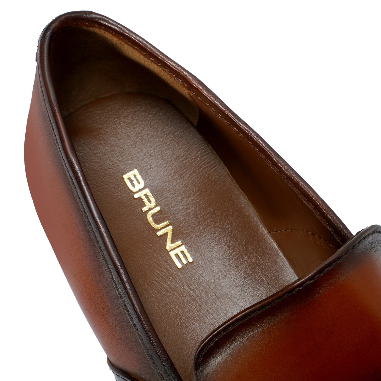 Designed with premium Punching Brogue leather strap, these luxe Burnished Cognac Leather Slip-On Shoes from Brune & Bareskin Brand are the perfect accessory for formal occasions. Crafted from genuine leather for a distinguished look. The contrasting anti-skid leather sole enhances the overall presentation of the shoe. Extra padded insole gives that extra cushiony comfort which helps to wear this for long. You can team up this Brune & Bareskin exclusive pair with formals & casuals too. You can customize this formal shoe in any of your favorite color with our bespoke services.
