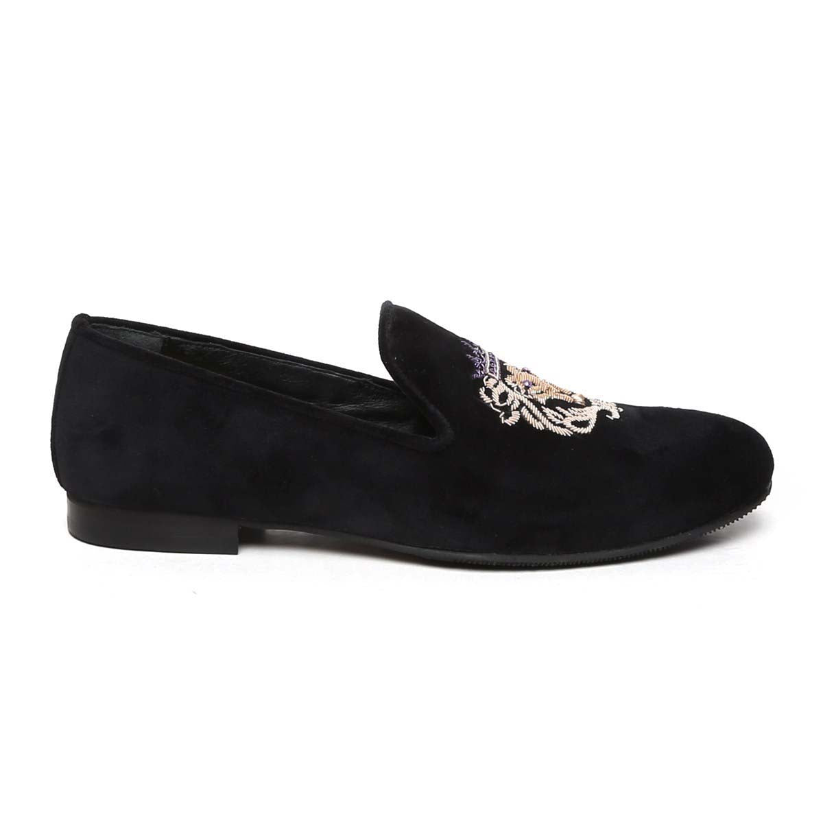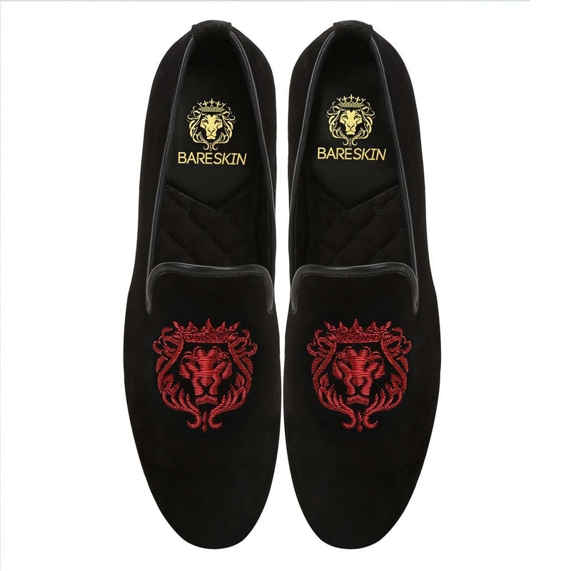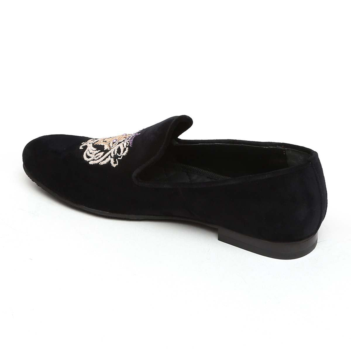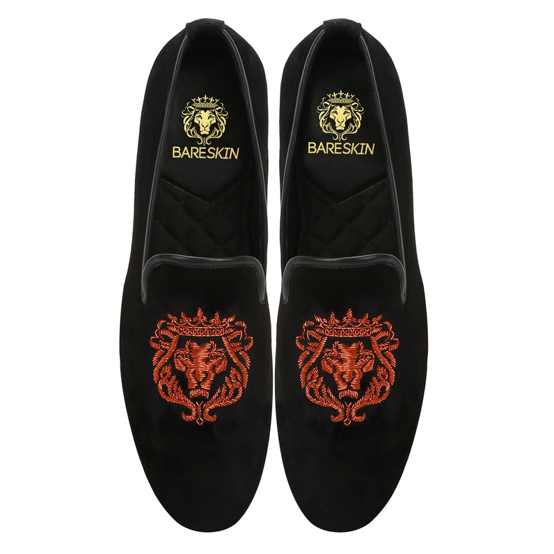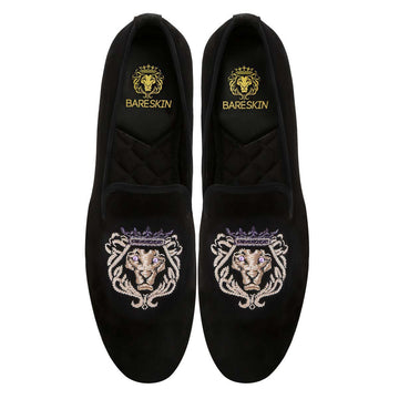 Purple Crown Lion Zardosi Black Velvet Slip-On Shoes