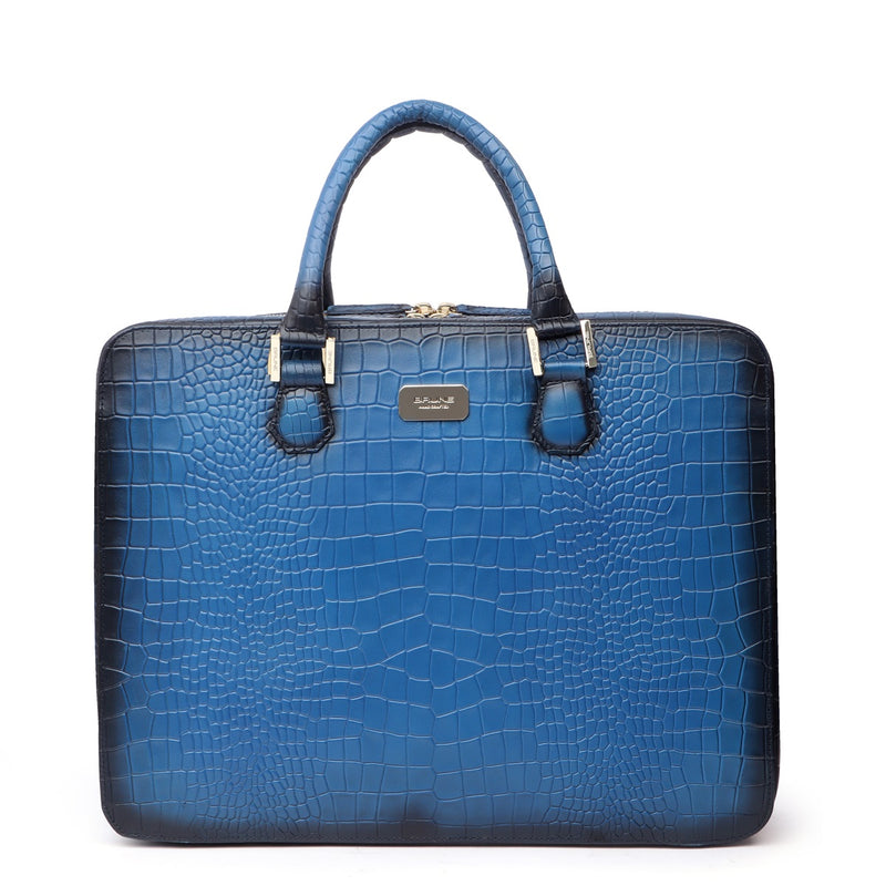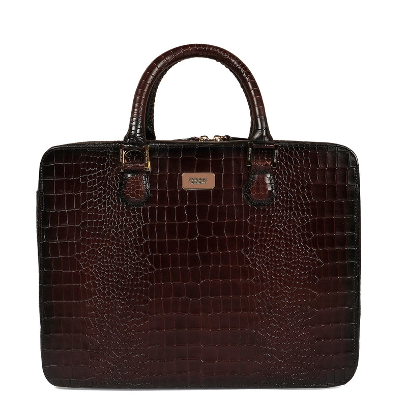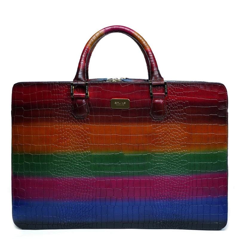 The Purple Italian leather Office briefcase provides the perfect gentleman look. This handcrafted genuine leather bag is hand-painted to achieve an artistic look. It has a dedicated laptop sleeve inside with an ultra-soft lining. It has a dedicated suitcase opening organizer compartment with multiple pockets. It is a perfect office bag in today's fast pace life. The adjustable shoulder strap connects and removes easily with the hidden hardware loops. You can carry it easily with perfect size carry handles. The roller bag sleeve at the back helps to attach this to the trolley bag while traveling.