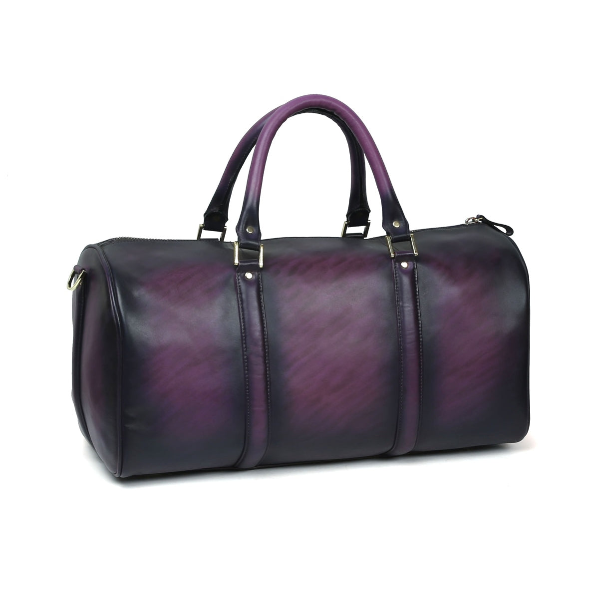 Purple Smudged Look Leather Brune & Bareskin Embossed Lion Duffle Bag