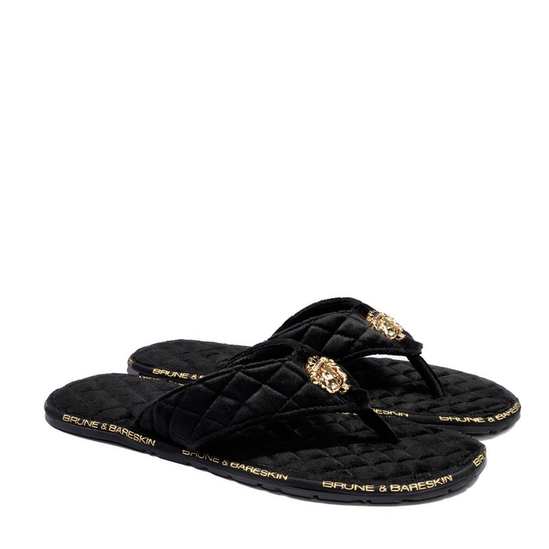 Discover the highest standards of luxury and style with Brune & Bareskin's V-Strap Slide-in Slipper. Handcrafted with premium and featuring a velvet, this men's Slide-in Slipper boasts iconic hand stitched v-strapped design. Experience comfort with extra-padded insoles and a rubberized flat sole for added durability.