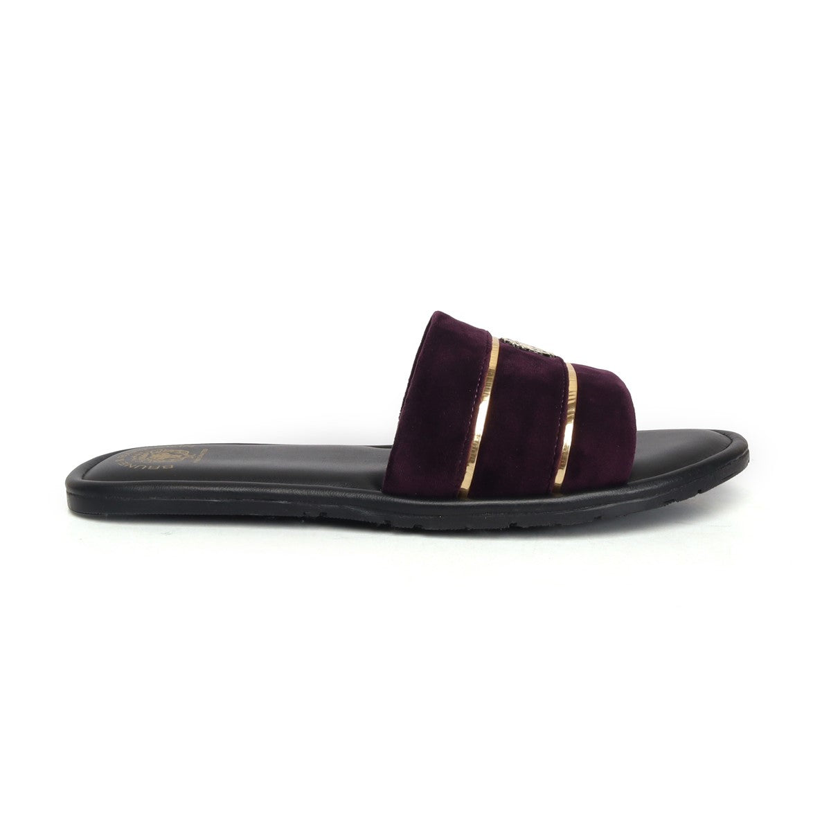Purple Velvet Strap Slipper with Black Leather Comfy Base
