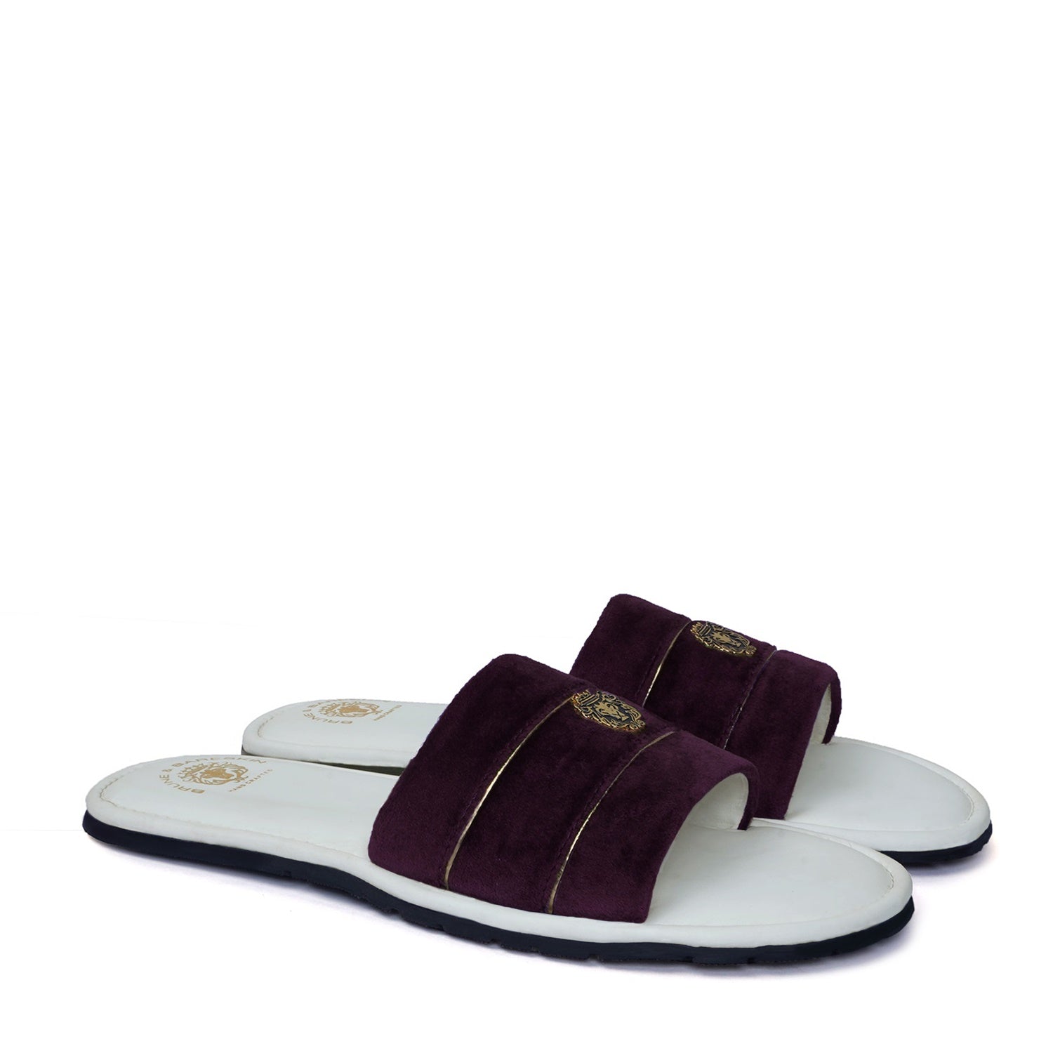 Purple Velvet Strap with White Leather Comfy Base Slide-in Slippers by Brune & Bareskin