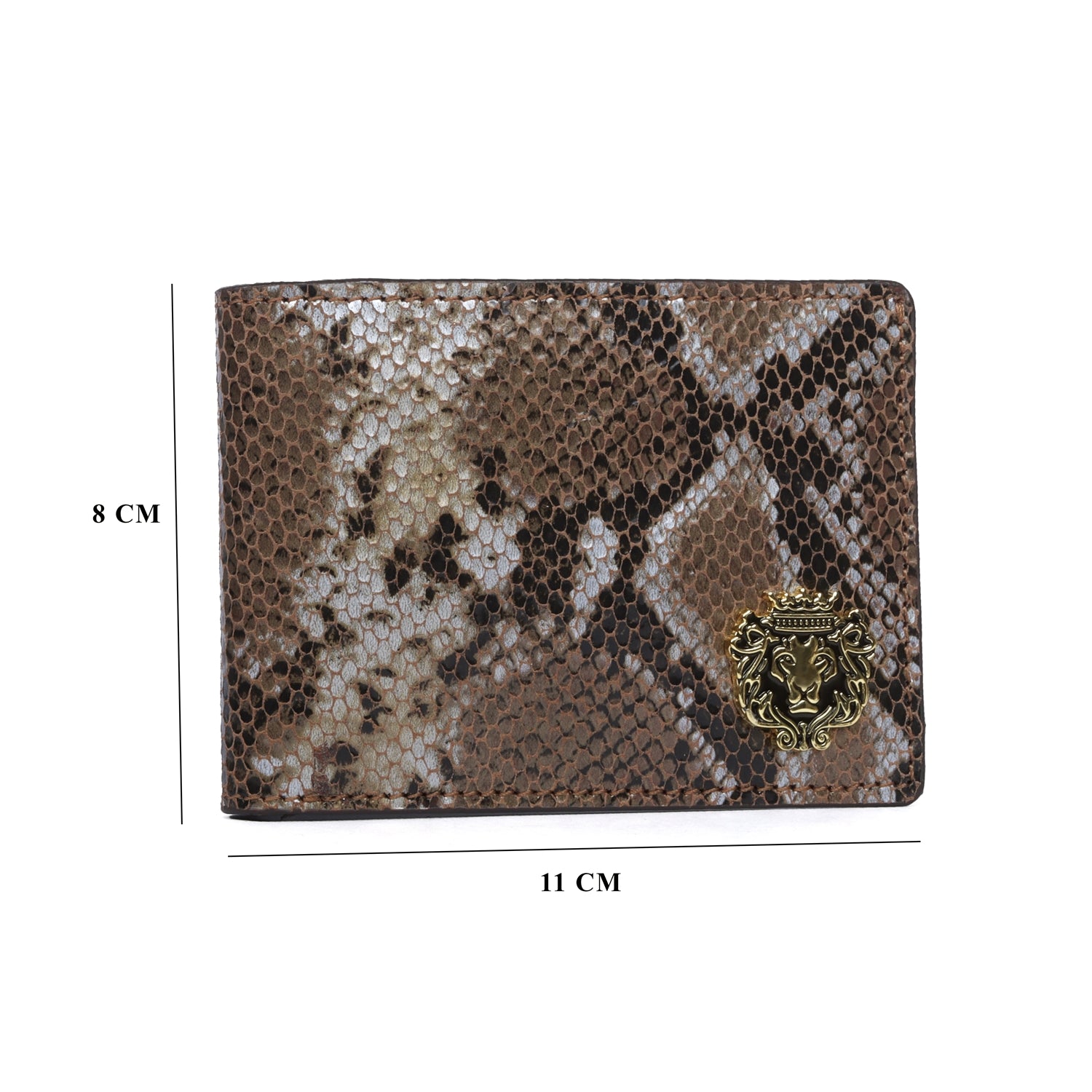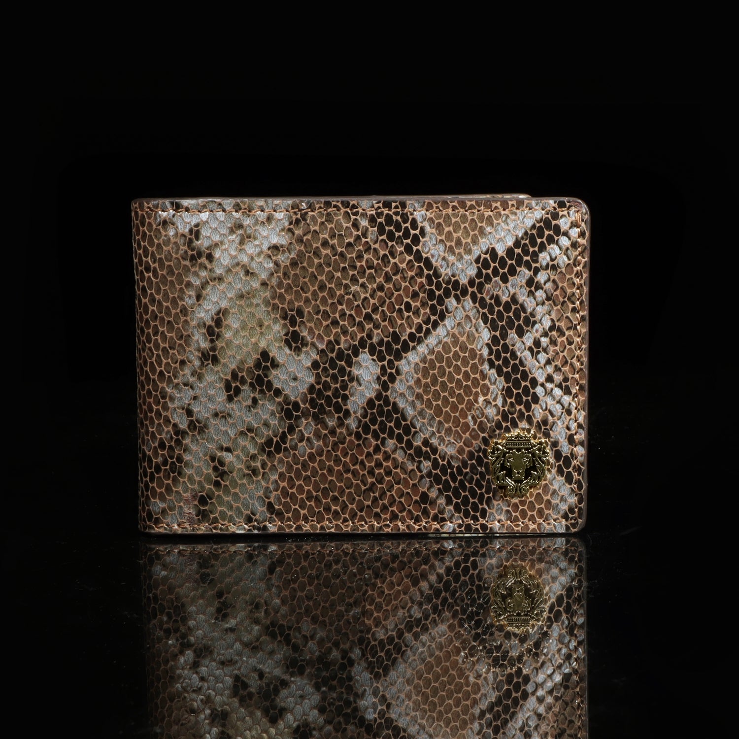Experience the extravagance of python snake skin with Brune & Bareskin luxurious bi-fold wallet. Meticulously crafted by hand, the wallet boasts a textured exterior with a golden finish metal lion logo for a dignified aesthetic. Inside you'll find one main compartment and six card holder slots, as well as two secret compartments to store your valuables in security. Perfect for the modern man of refined taste.. You can get your name initials on wallet with our bespoke services.