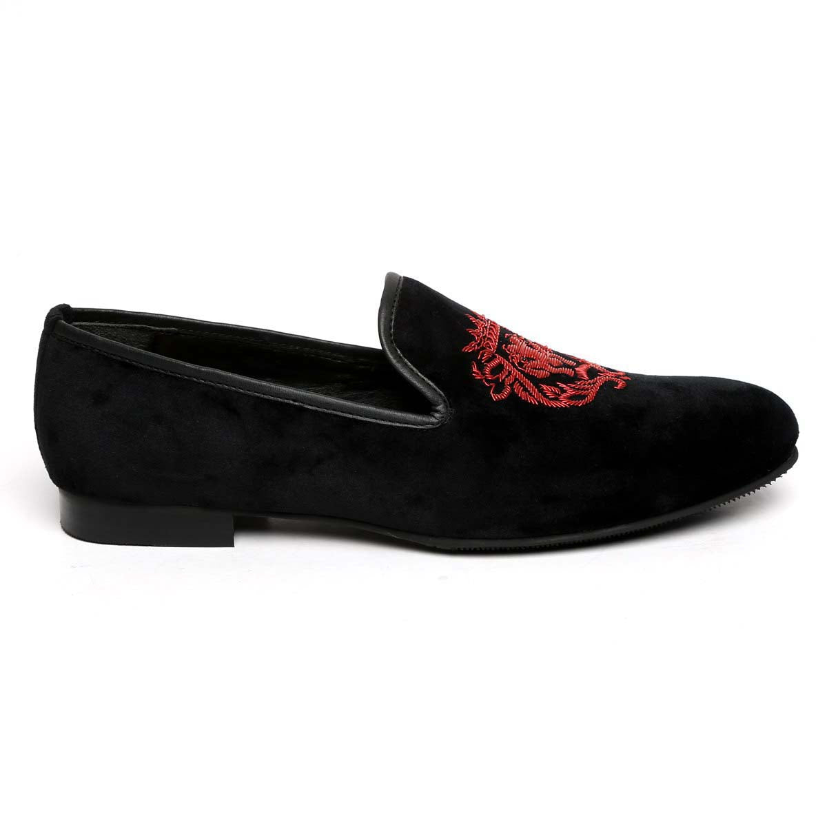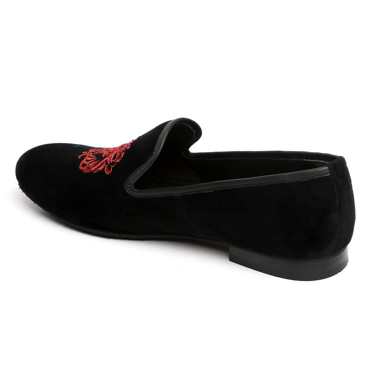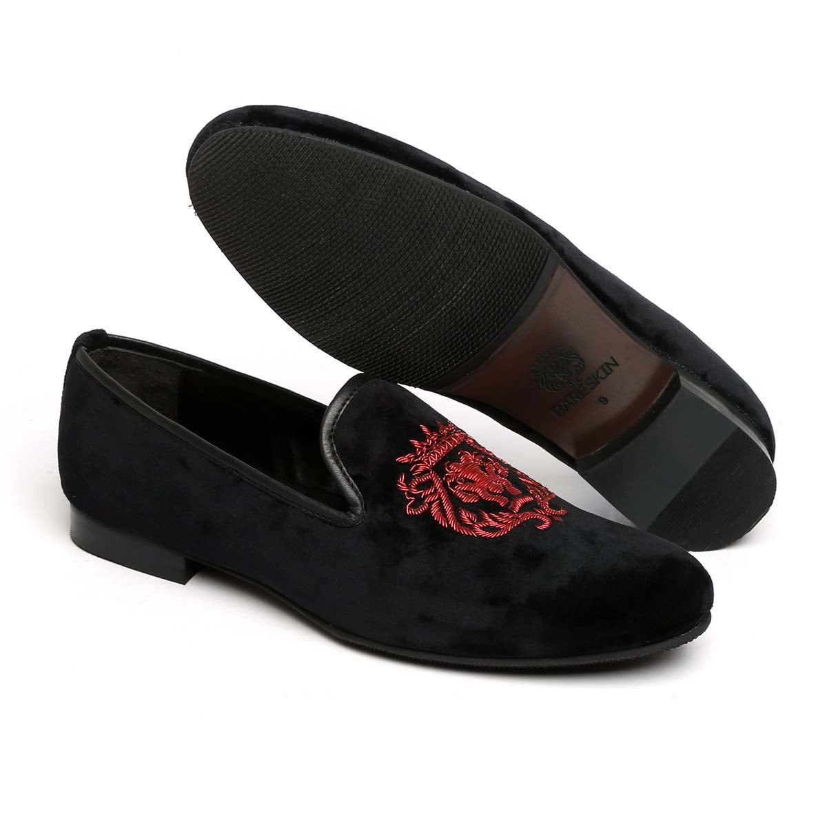 The Brune & Bareskin Lion Zardosi collection is a perfect Ethnic compliment footwear collection. The Lion hand zardosi is done by the most experience hands of the Industry. This Zardosi can be customized further to match the apparel theme. An elegant pair of Black slip on shoes is a must-have for every well dressed man. This smooth Velvet Black Slip-on gives an elite style and debonair look. This is an amazing addition to your wedding collection.