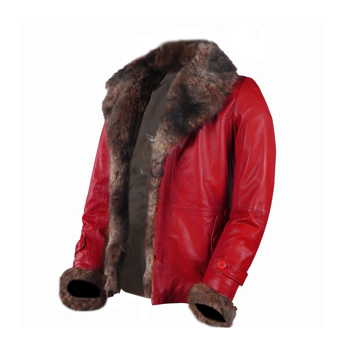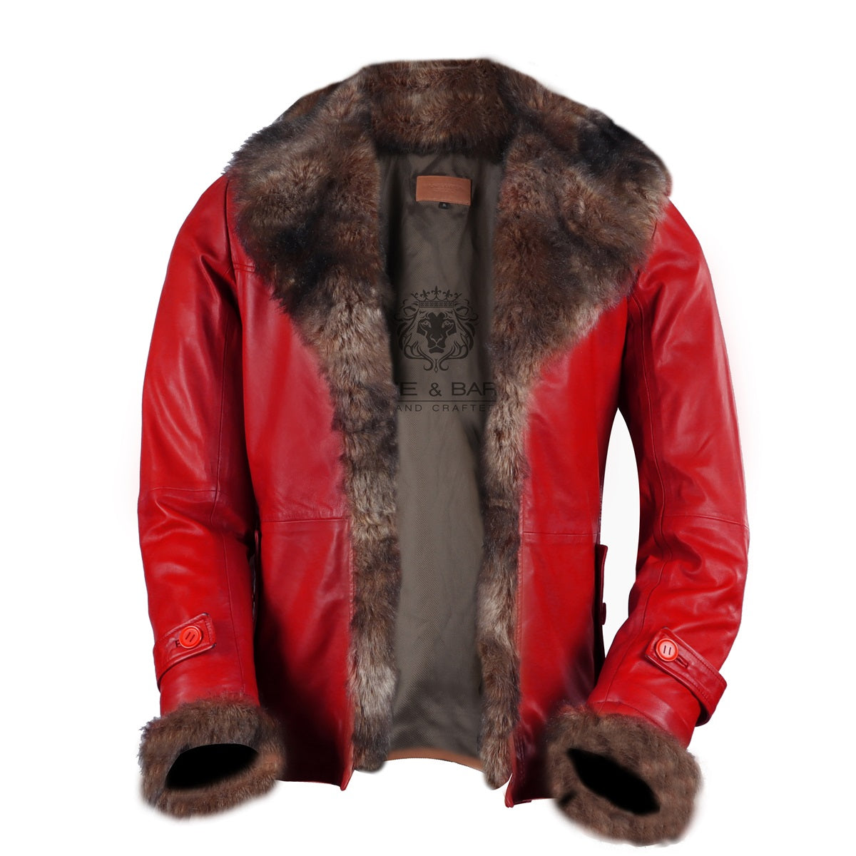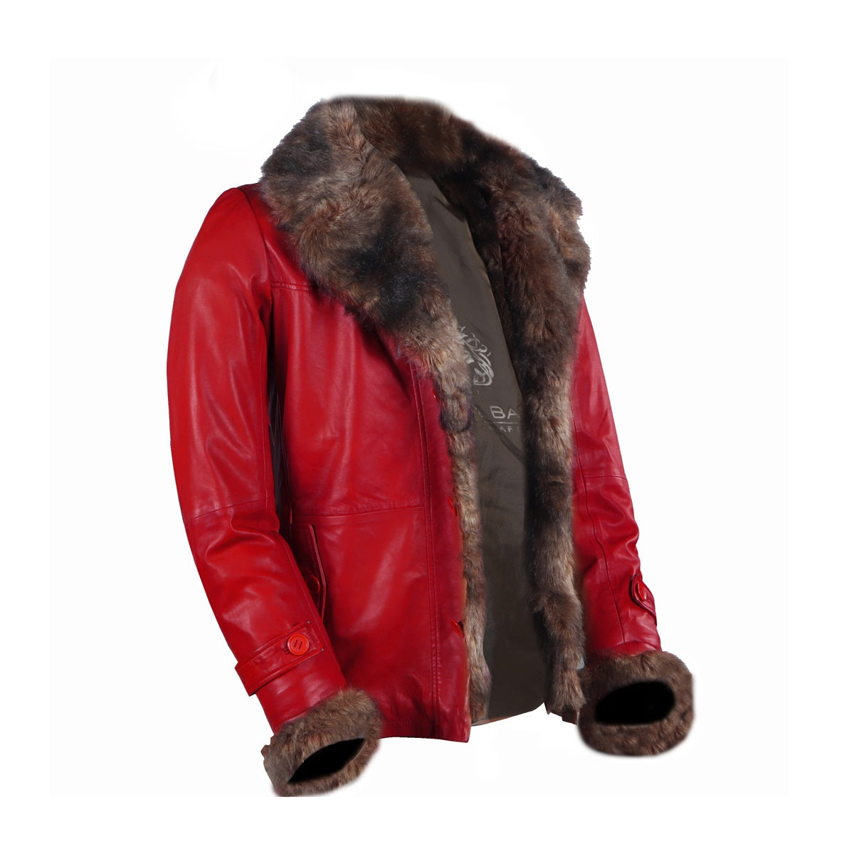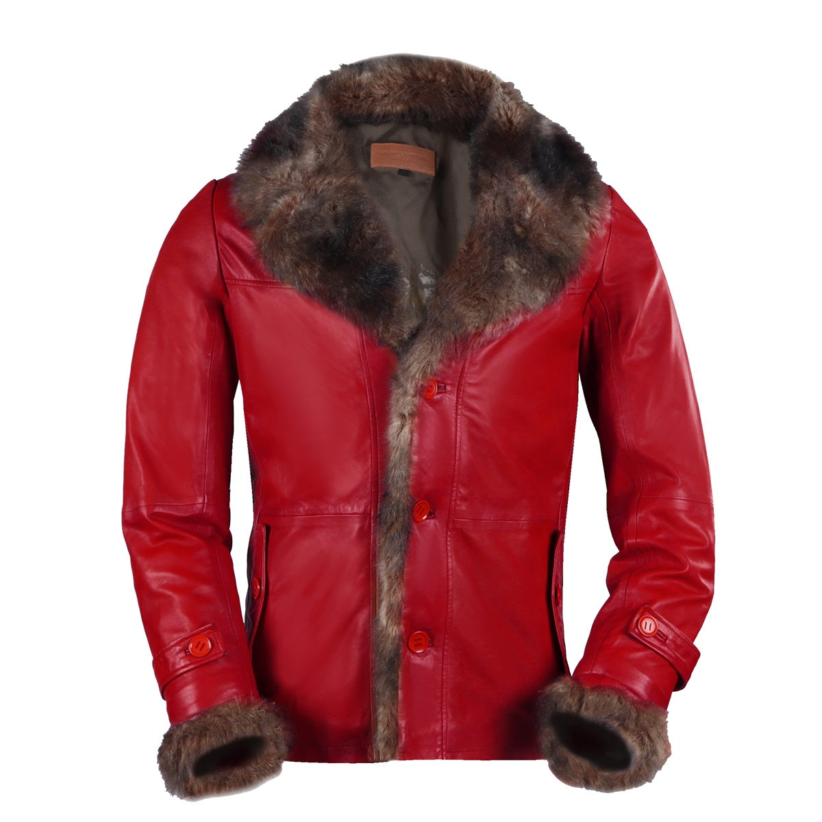 This Red leather fur jacket is like a style gem in men fashion apparels. Sheepskin is one of the most luxurious leathers and known for its soft touch feel. It's naturally very lightweight. This chic leather jacket has a shear-ling fur across collar and front with easy access button closure. This is a must have Jacket to enhance the luxurious elegance in your wardrobe. The company " Brune & Bareskin" complements the fashion statement in a unique way to help customers cherry-pick from the collection & feel better & look better. You can customize this Jacket in any of your favorite color with our bespoke services.