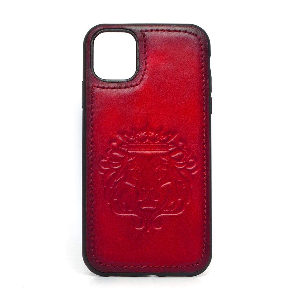 Red Leather Lion Embossed Mobile Cover