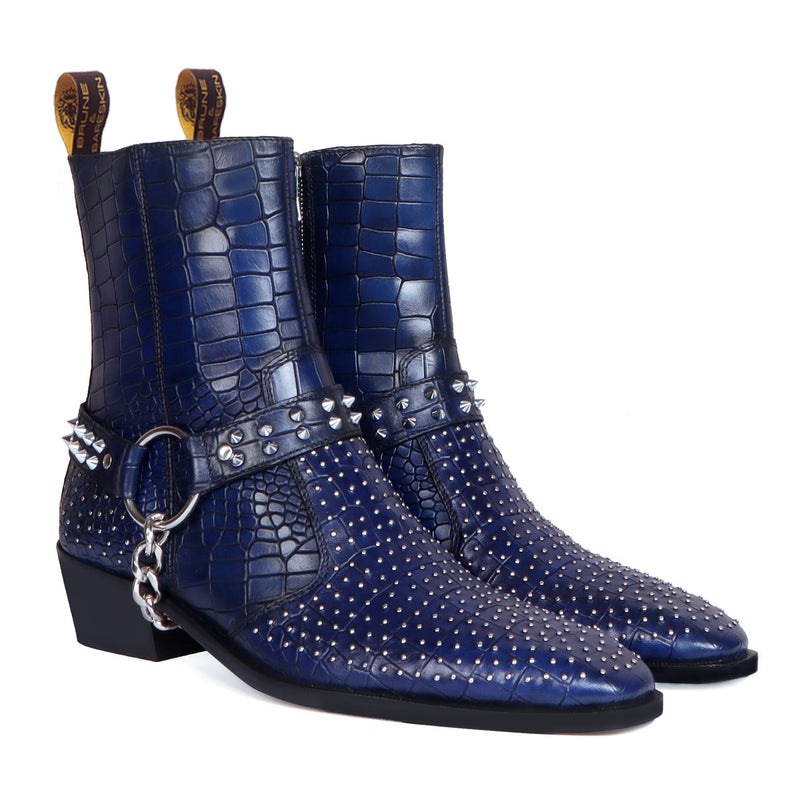 This shoe can be customized according to your liking. This Shoe is entirely handcrafted by our expertise. The greater detailing of Inner side zipper closure at the ankles lend a classy look to these deep cut leather formal shoes. Adjustable/Removable Stylish buckles Straps around the ankle take care of the appropriate fit and comfort. These Smokey finish olive deep cut croco textured leather ankle-length shoes are fitted to emphasize the size and shape of your feet to perfection.