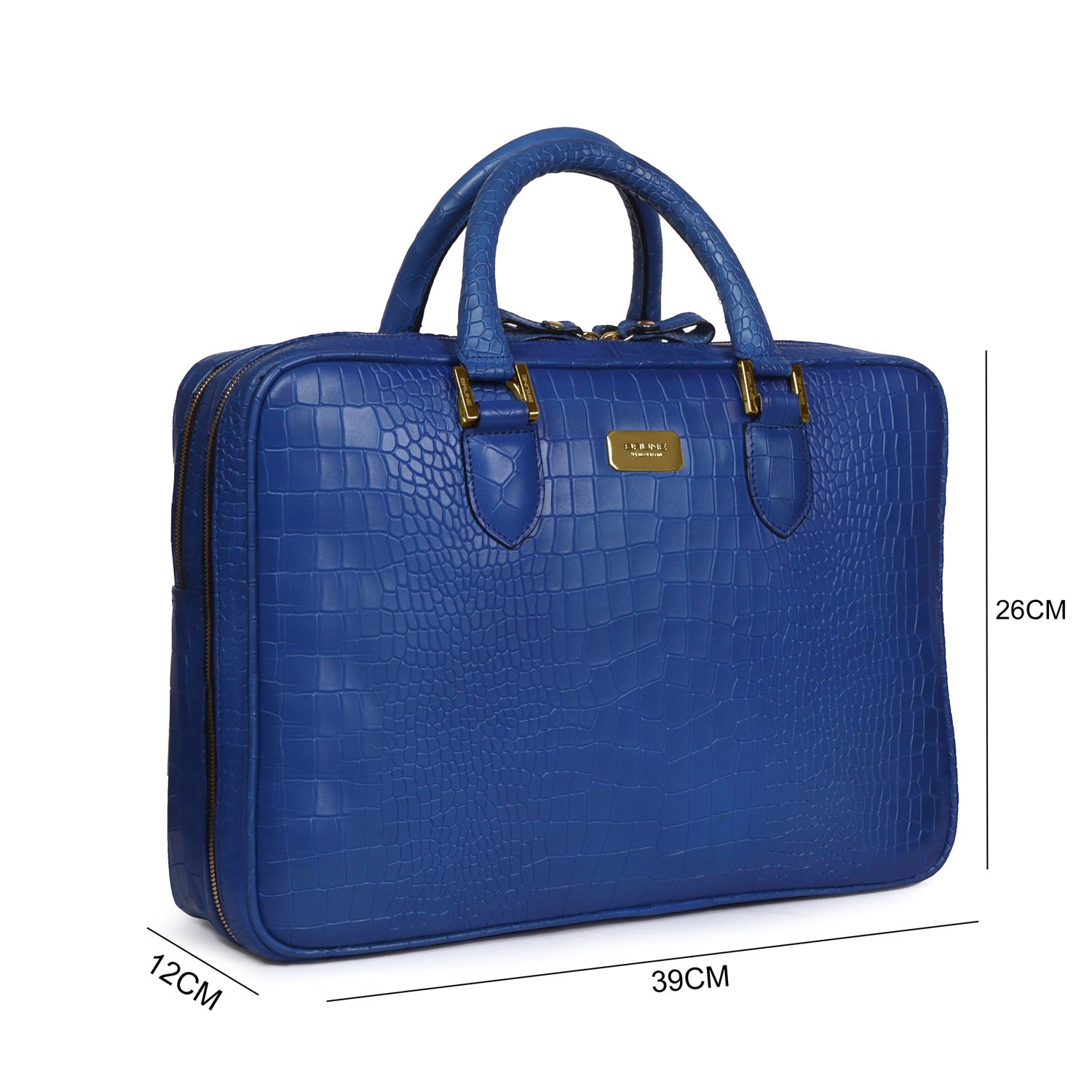 Sky Blue Leather Laptop Office Briefcase With Extra Compartment in Croco Textured Leather
