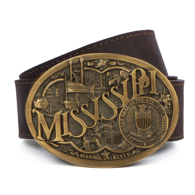 Rich Mississippi Culture Inspired Buckle Smokey Cognac Deep Cut Croco Textured Leather Belt By Brune & Bareskin
