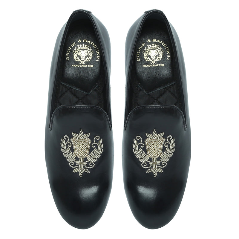 Black Patent Leather Slip-On Shoes Royal Crest Silver Zardosi For Men By Brune & Bareskin