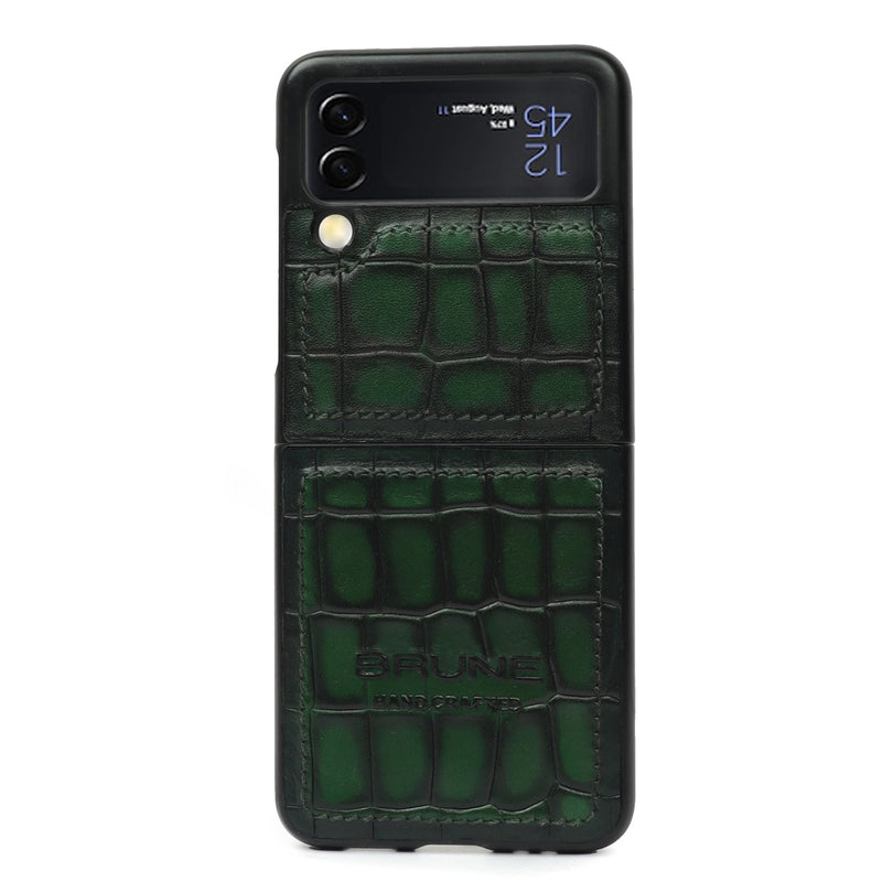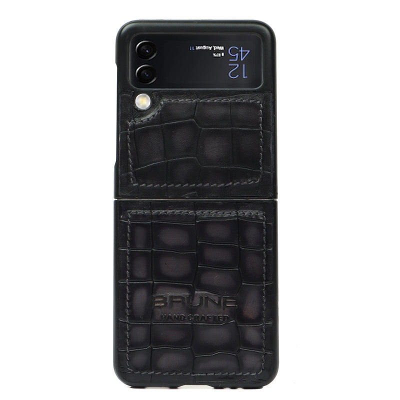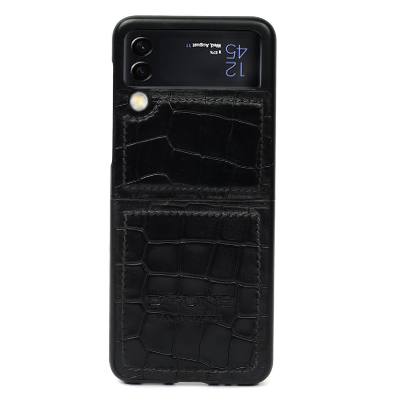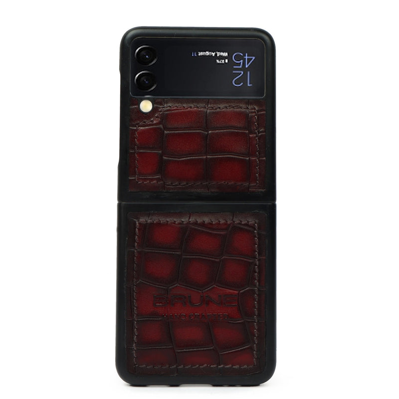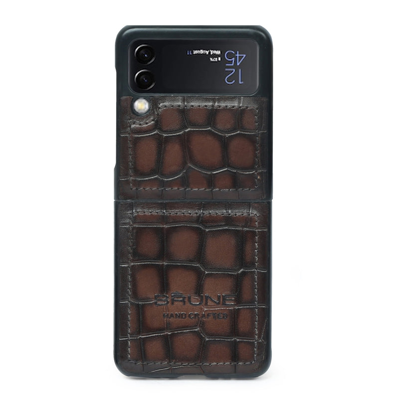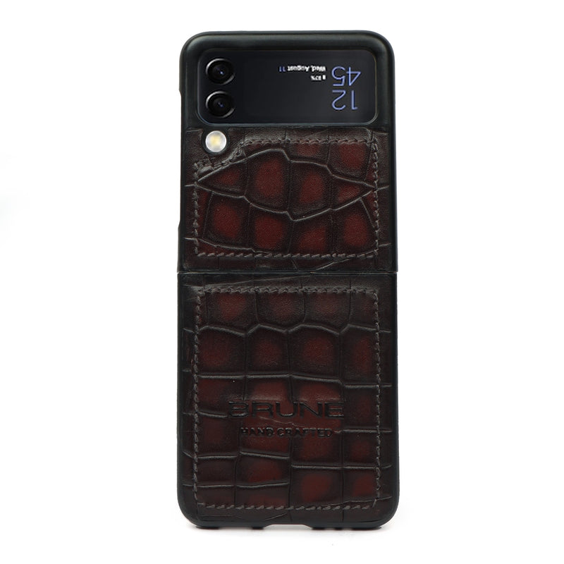 Samsung Galaxy Flip Series Tan Deep Croco Textured Leather Mobile Cover by Brune & Bareskin