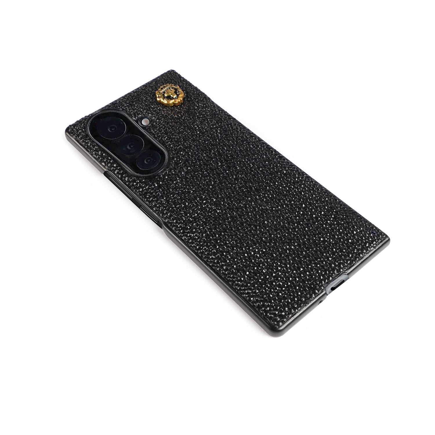 Samsung Galaxy Fold Mobile Cover in Luxury Black Stingray Fish Shining Leather