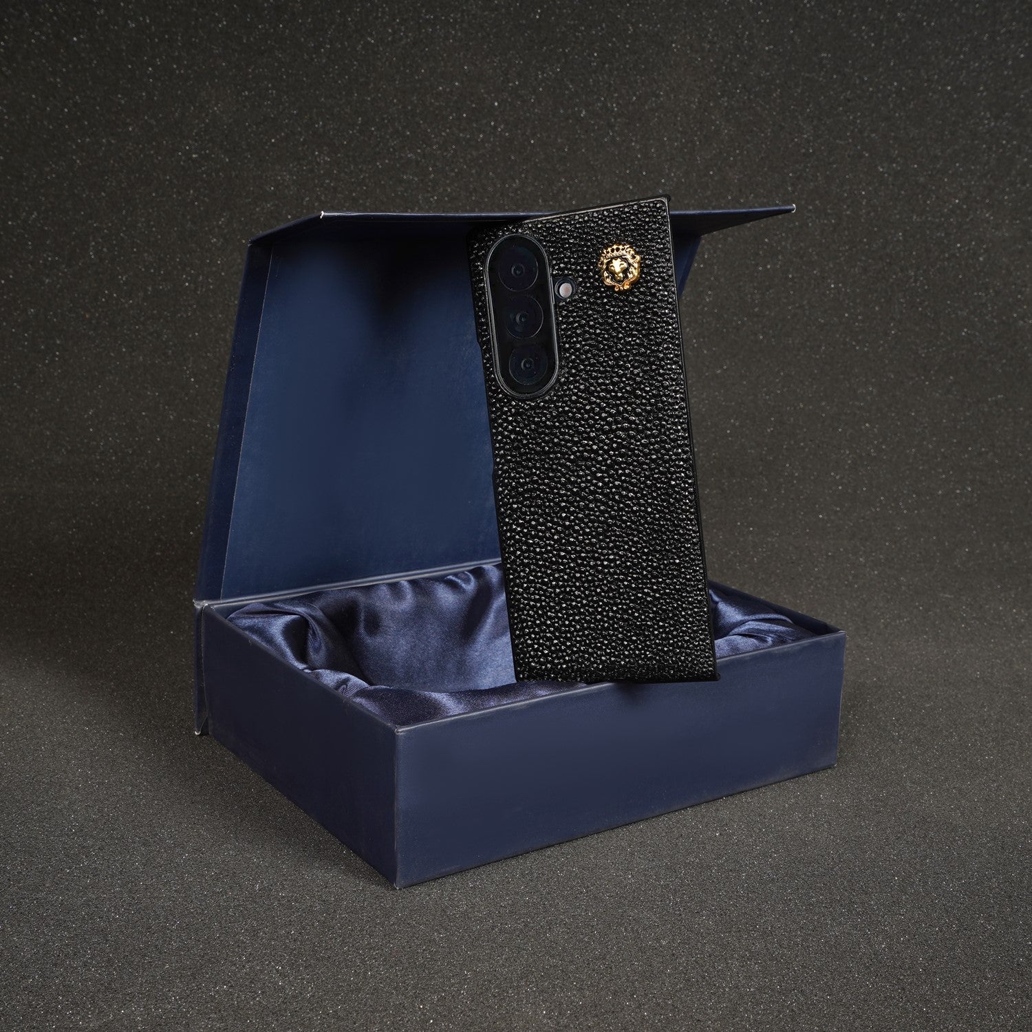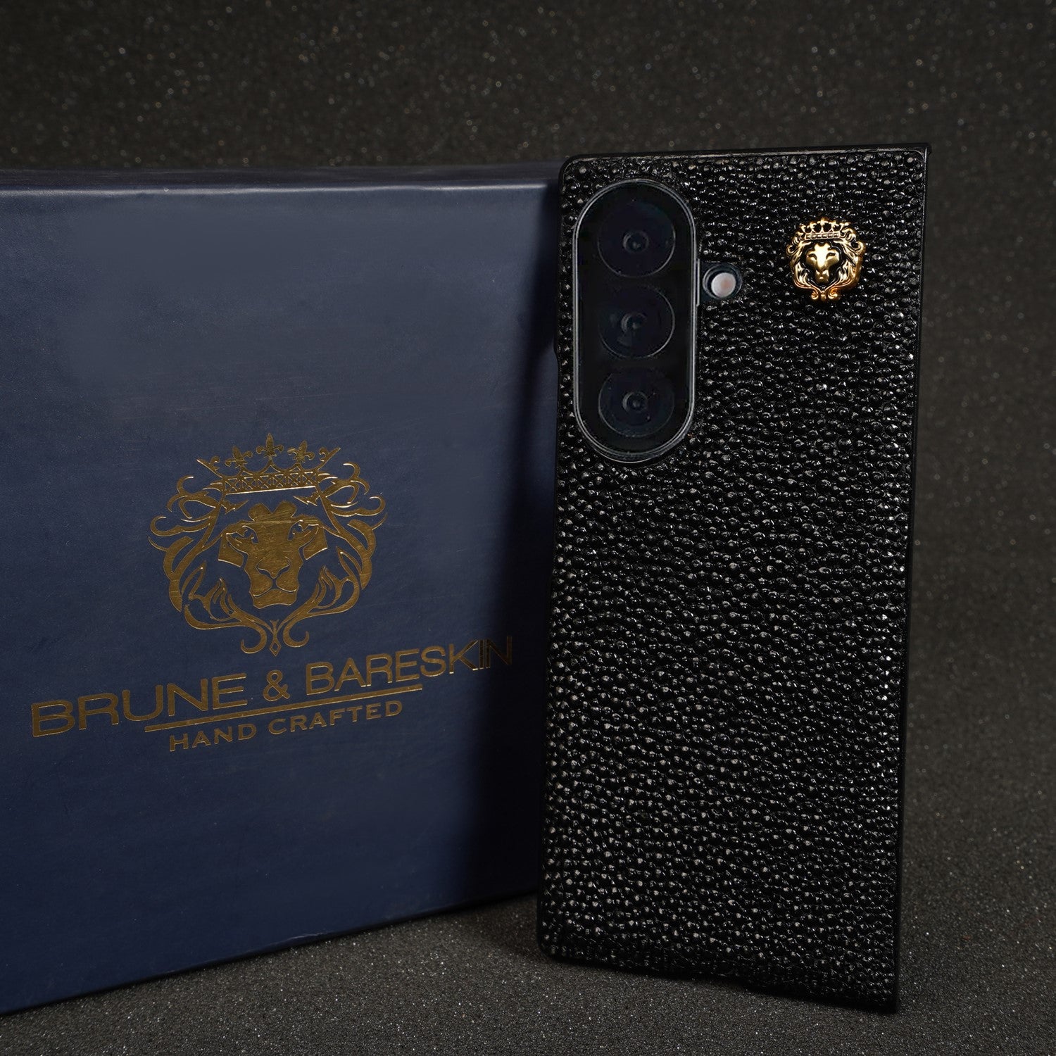 This exotic stingray fish leather cover leaves a remarkable mark of style. The Brune & Bareskin signature metal lion brand logo increases the style quotient further. This cover is designed to work in both modes, closed and open without any hiccup. This leather has a natural shine which only increases with regular usage. Due to its superior quality & ultra durability it can last for 4 decades easily. It is water & scratch resistant.