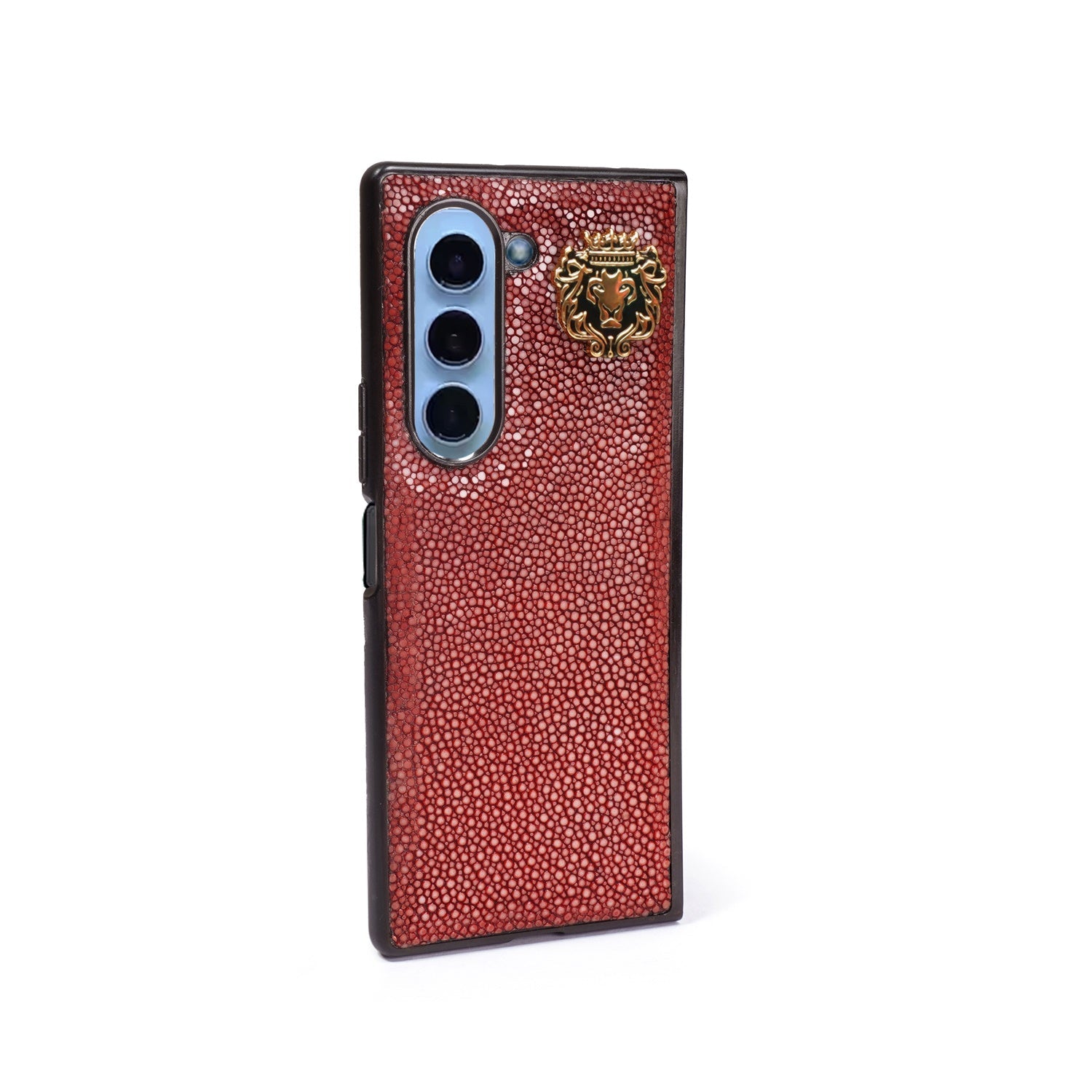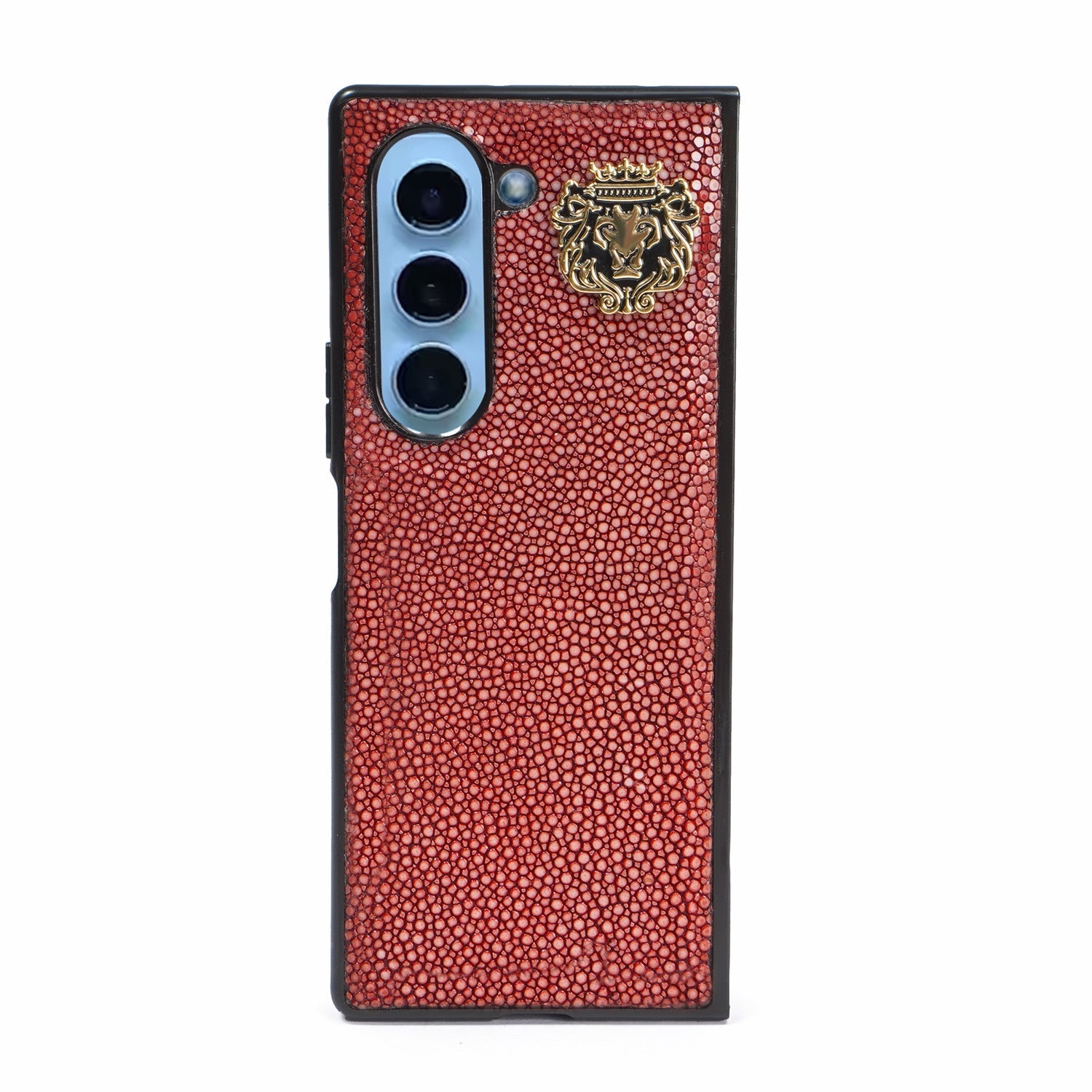 Samsung Galaxy Fold Mobile Cover in Luxury Red Stingray Fish Shining Leather