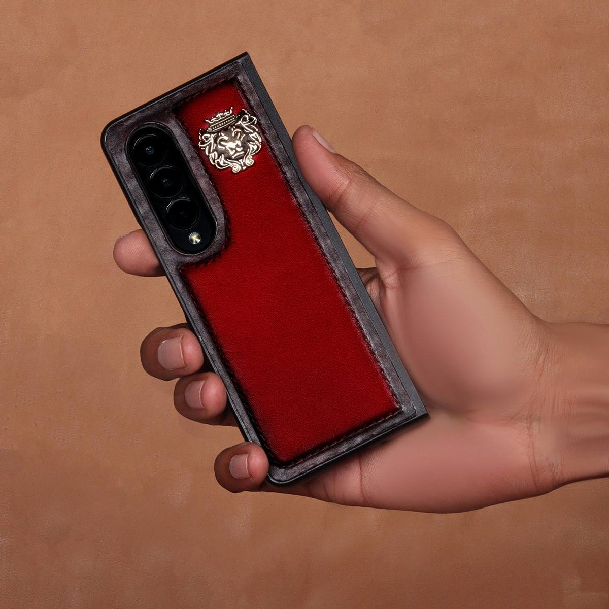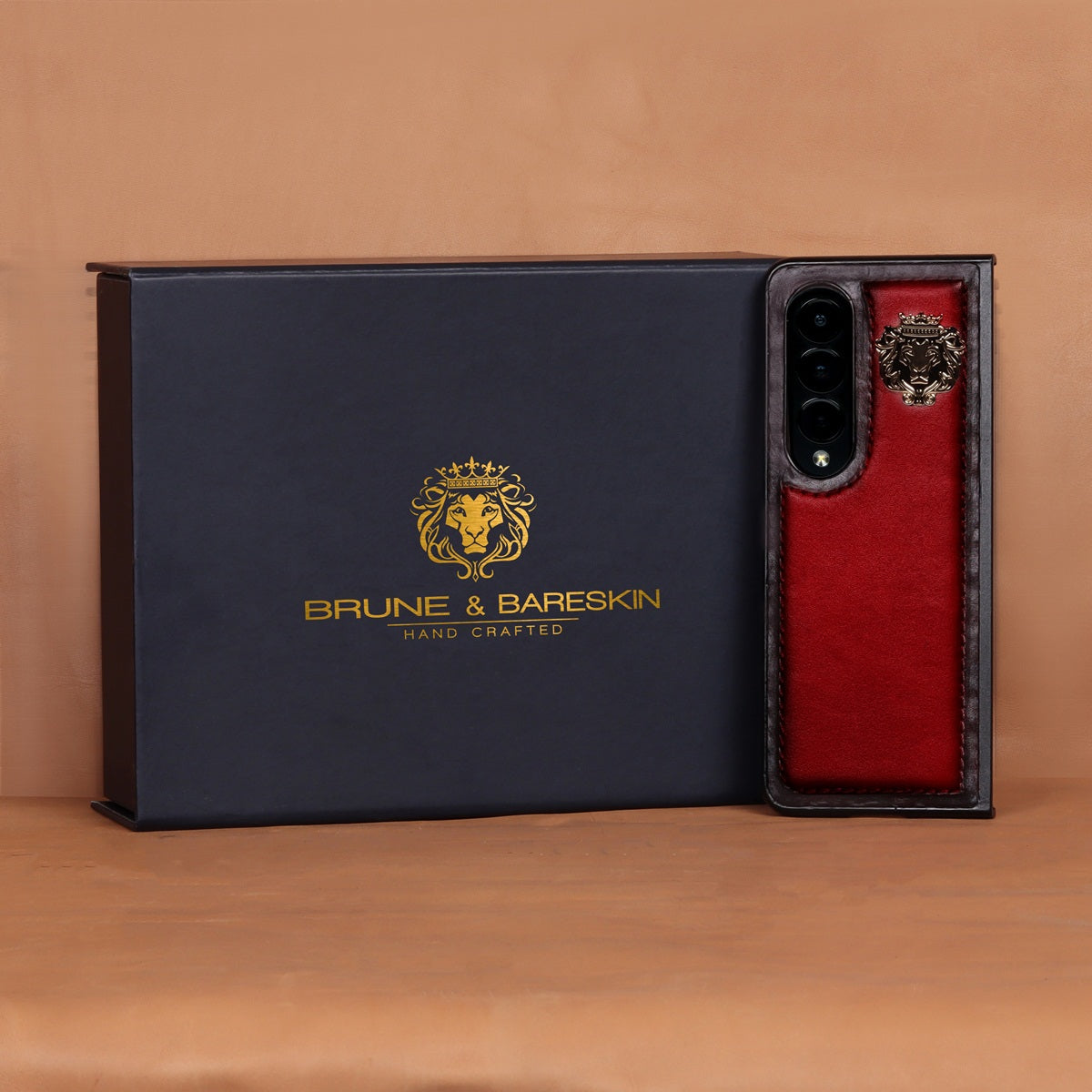 Wine Samsung Galaxy Fold Series Genuine Leather Mobile Cover With Metal Lion by Brune & Bareskin