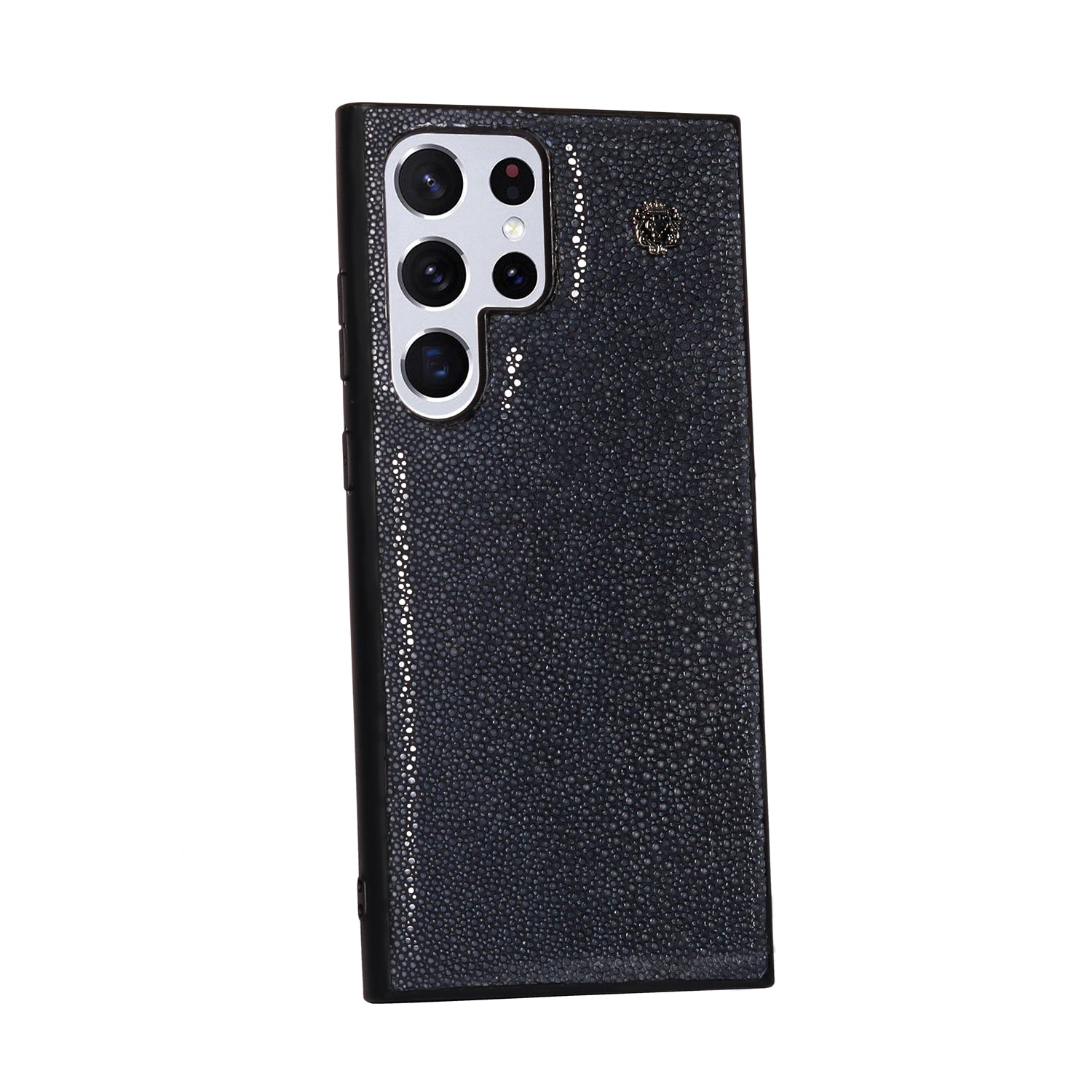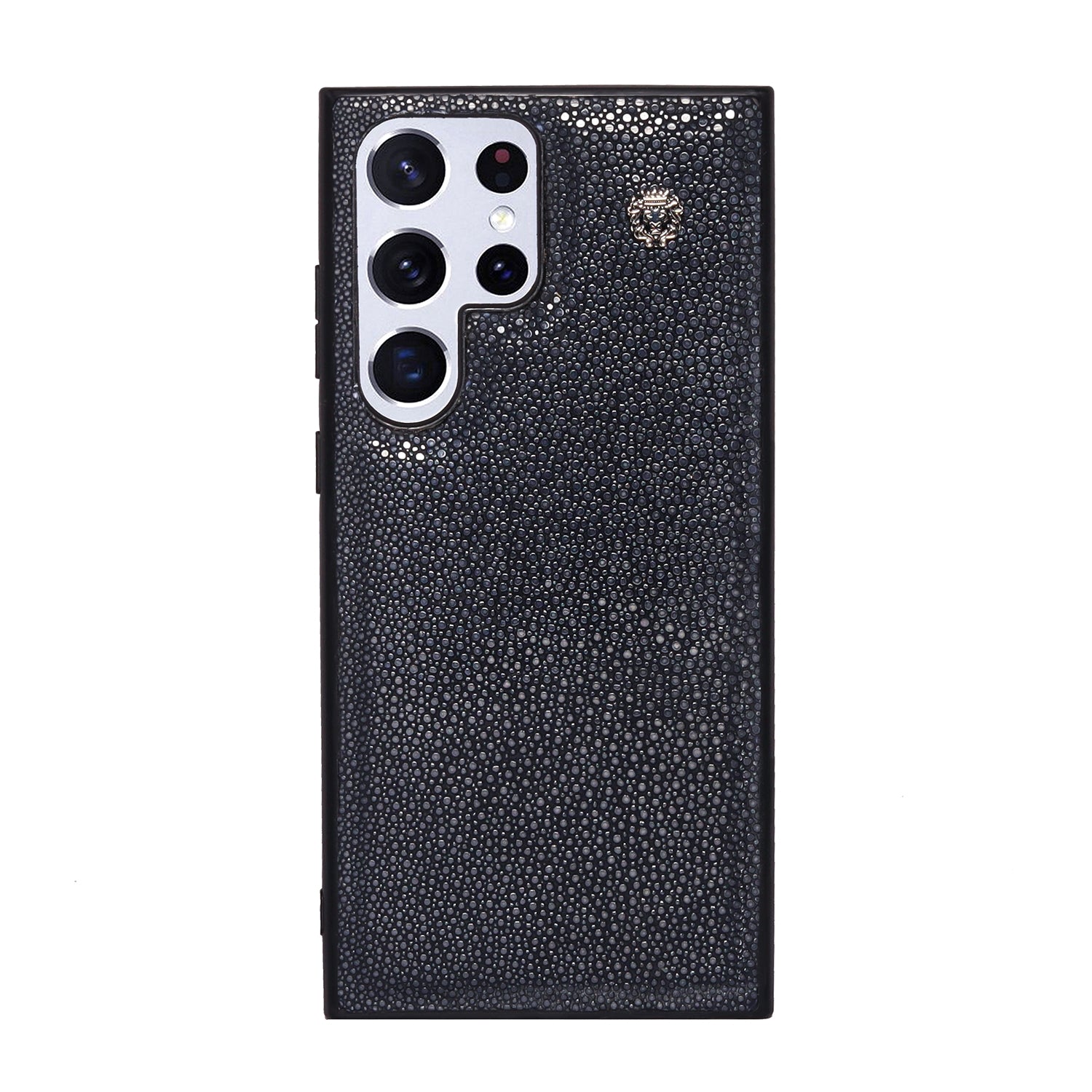 Exotic Samsung S Series Mobile Cover in Stingray Fish Leather With Mini Lion Silver Logo