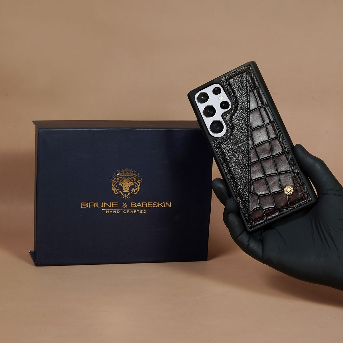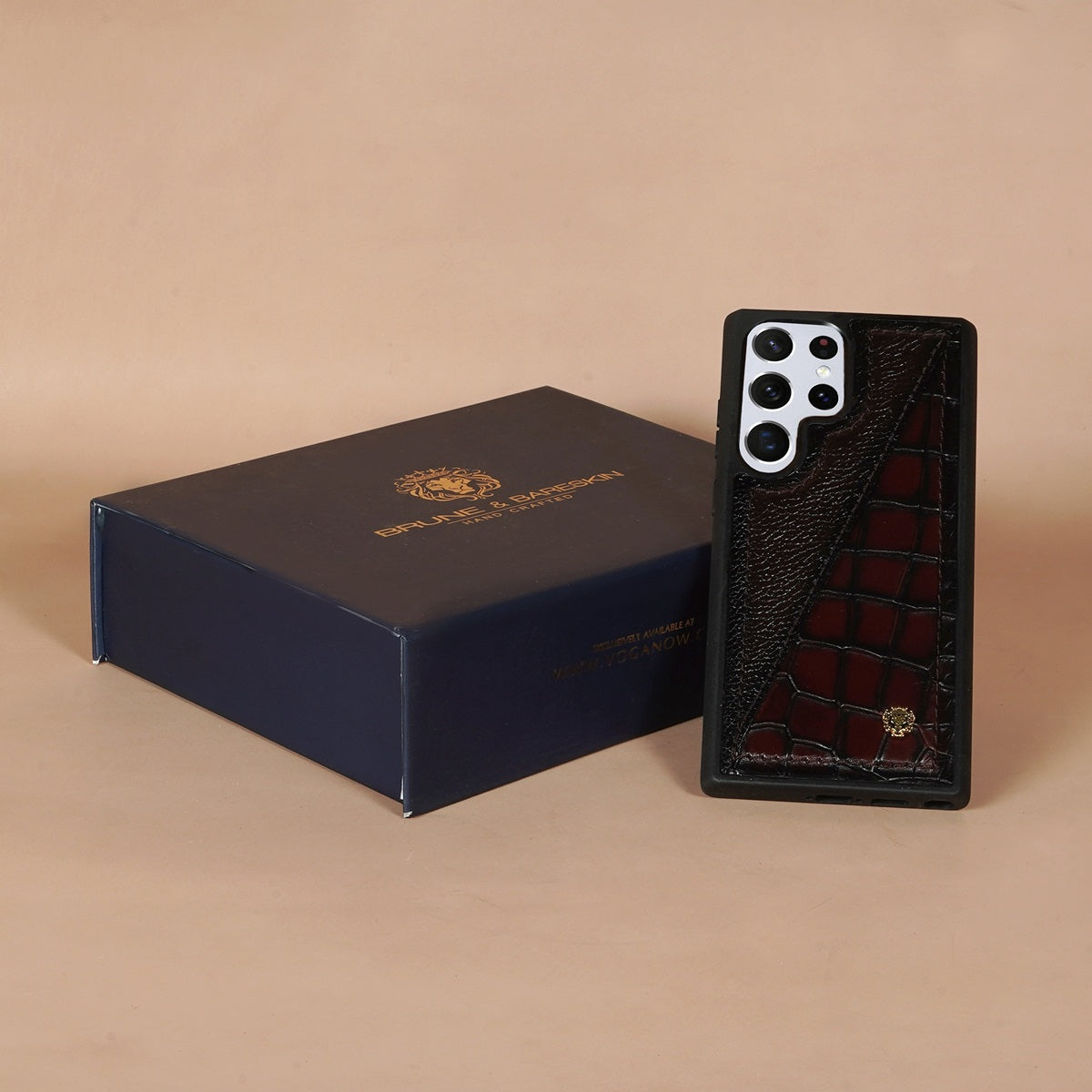 Samsung S Series Mobile Cover with Center stitched Silhouette Deep Cut & Textured Leather