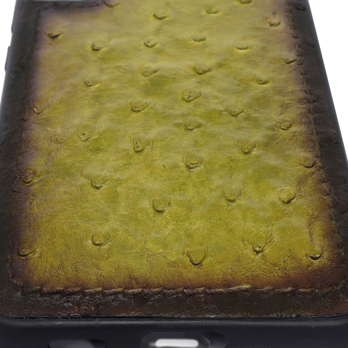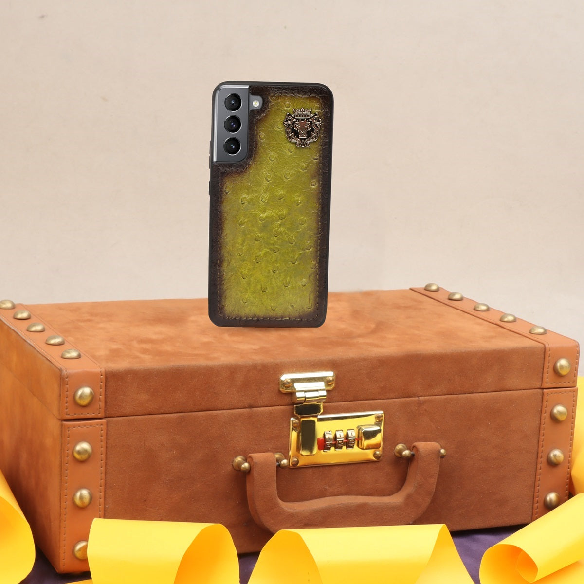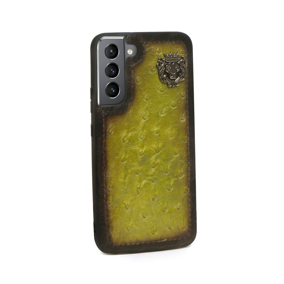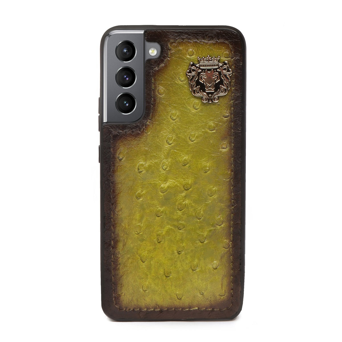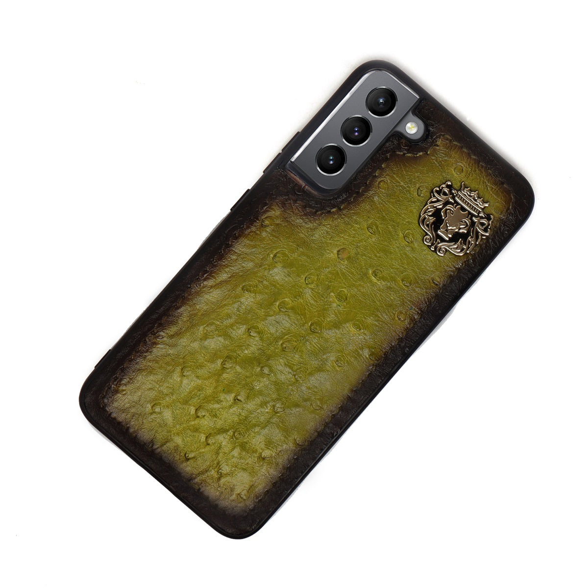 Samsung S Series Ultra Mobile Cover Olive Real Ostrich Leather