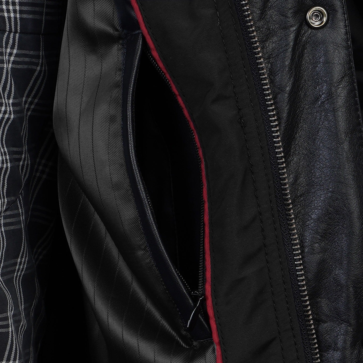 | This black zipper-button coat jacket is made to provide you the warmth and style quotient at the same time. The zipper & button front closure provides the dual look of a jacket and a coat. The multiple pockets on front provide you the ample space to carry essentials. The snap button fastening sating collar. The light in weight jacket helps to keep you warmer. The contrasting genuine leather trims used on collar, arms and back makes it a perfect buy for the fashion forward folks. Club it with a tee, a pair of jeans and leather boots for a perfect ensemble. |