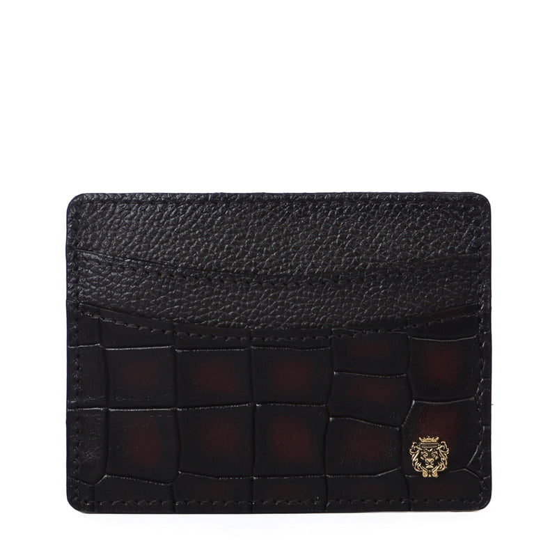 Elevate your style with our Silhouette Black Leather Card Holder. This exquisite card holder, crafted from genuine croco textured leather, features the iconic Silhouette design and a premium patina finish. Keep your essentials safe and secure while making a statement with our trade mini lion logo. Easy to carry, this is the perfect accessory for any luxury lover.