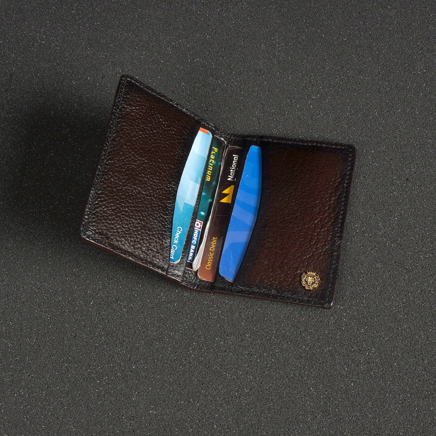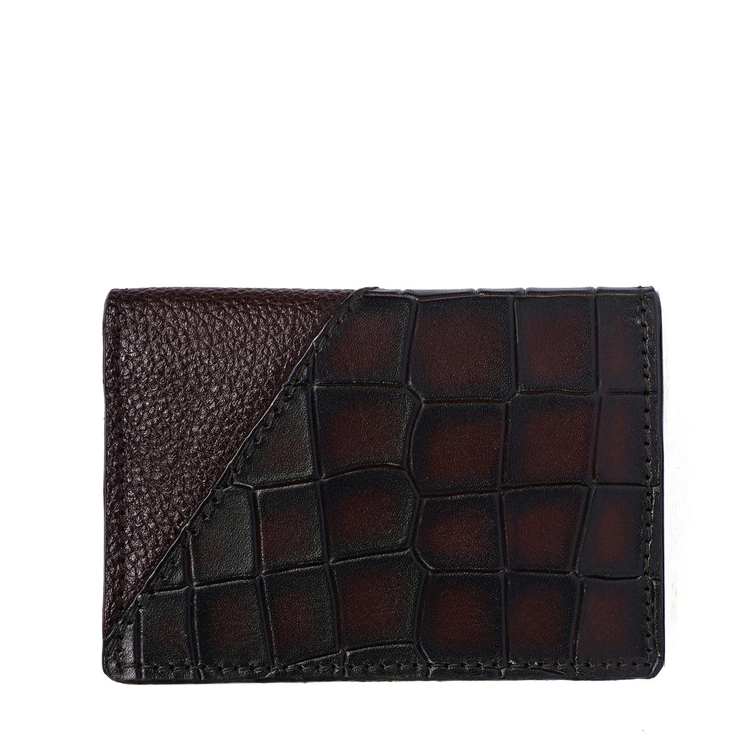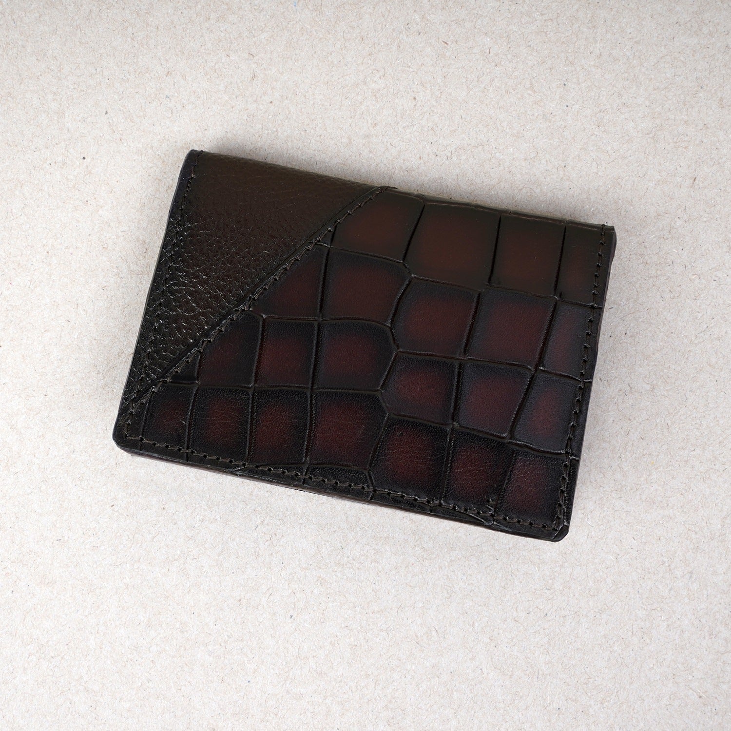 Silhouette Dark Brown Card Holder in Deep Cut and Textured Leather