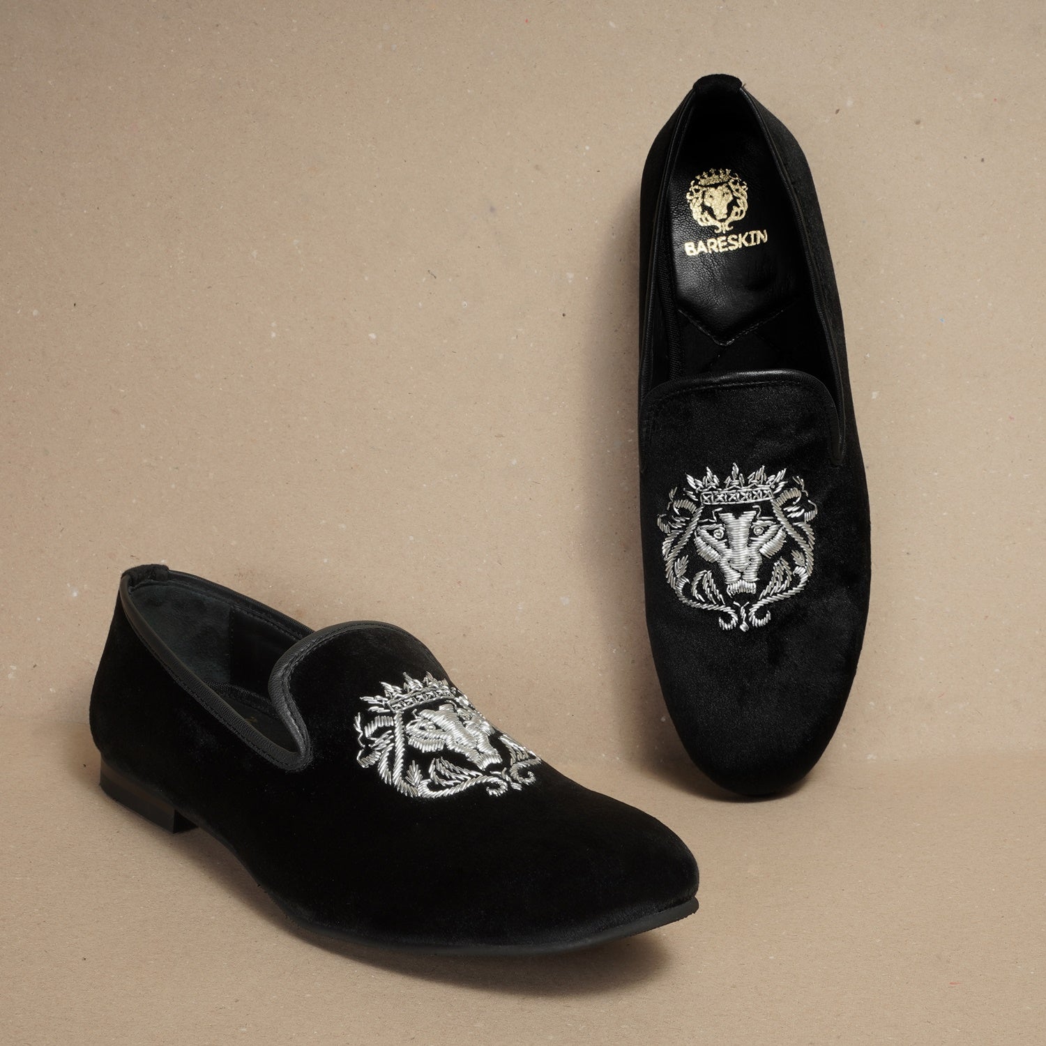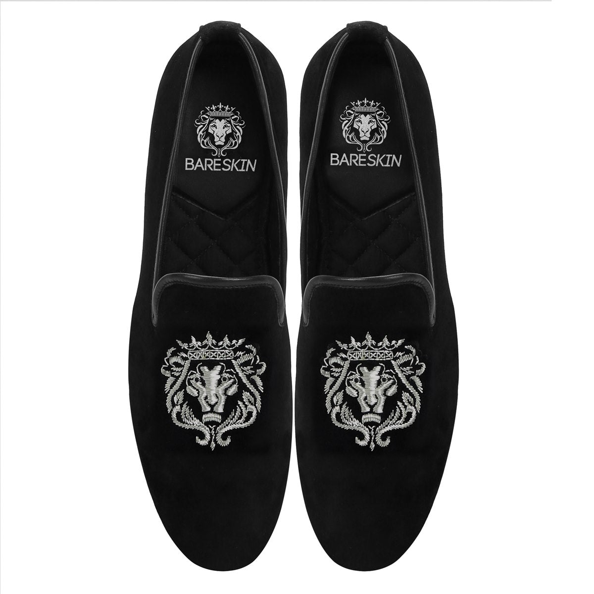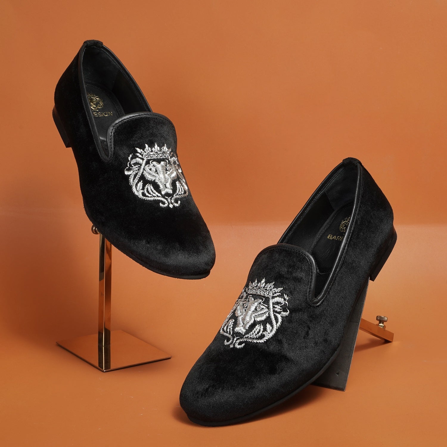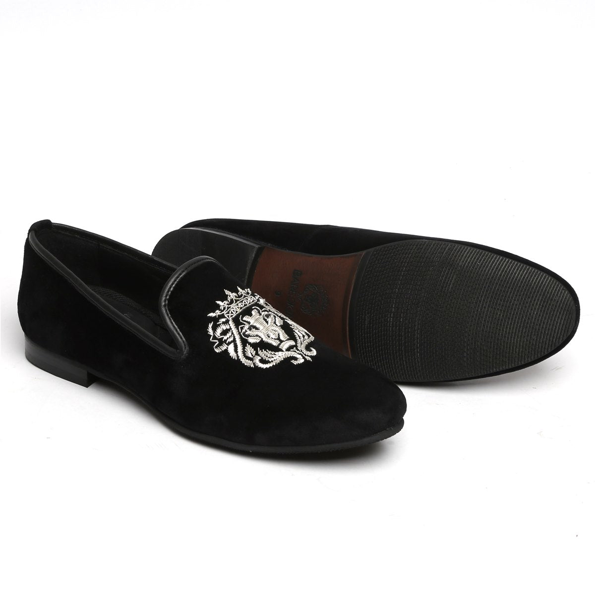 The Brune & Bareskin Lion Zardosi collection is a perfect Ethnic compliment footwear collection. The Lion hand zardosi is done by the most experience hands of the Industry. This Zardosi can be customized further to match the apparel theme. An elegant pair of Black slip on shoes is a must-have for every well dressed man. This smooth Velvet Black Slip-on gives an elite style and debonair look. This is an amazing addition to your wedding collection.