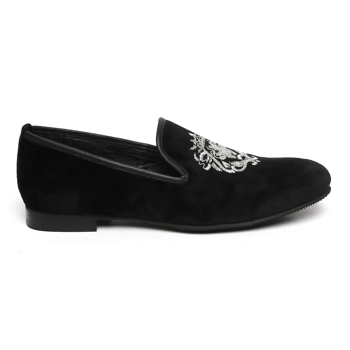 Silver Lion Zardosi Black Velvet Slip-On