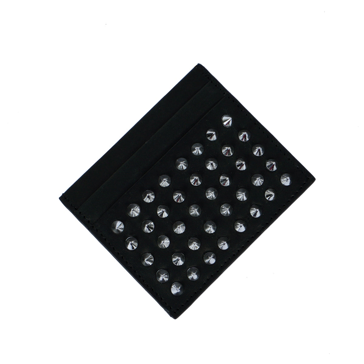 Silver Studded Black Leather Unisex Card Holder With Multi Slot By Brune & Bareskin