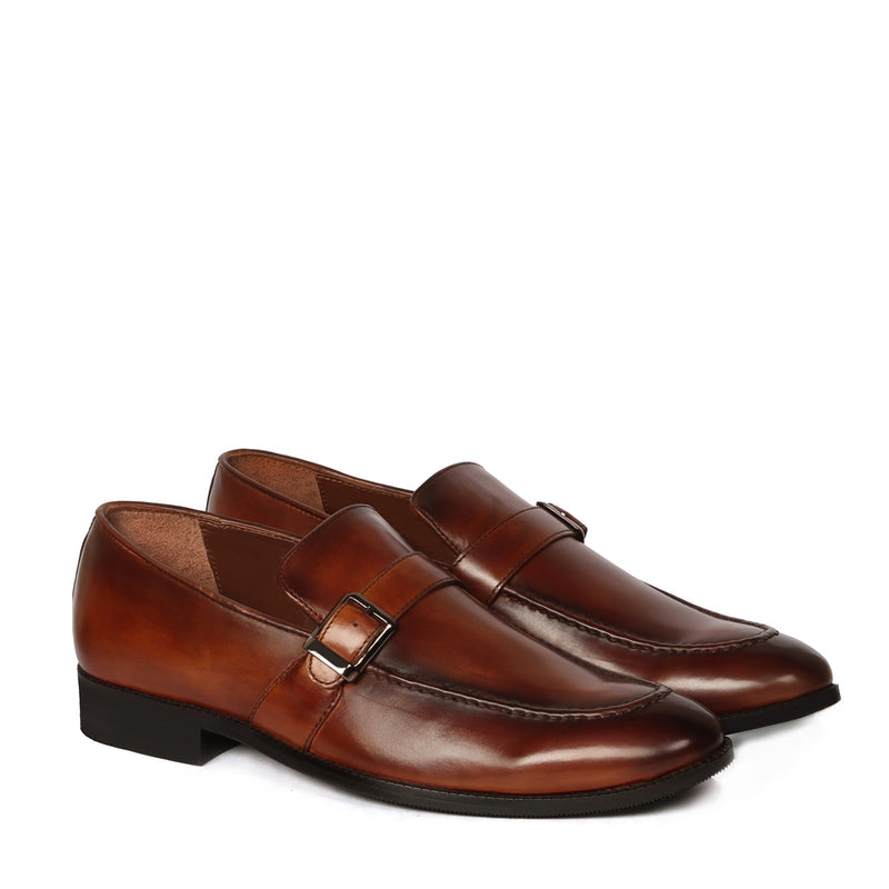 Single Monk Cognac Leather Apron Toe Buckle Strap Slip-On Shoe For Men By Brune & Bareskin
