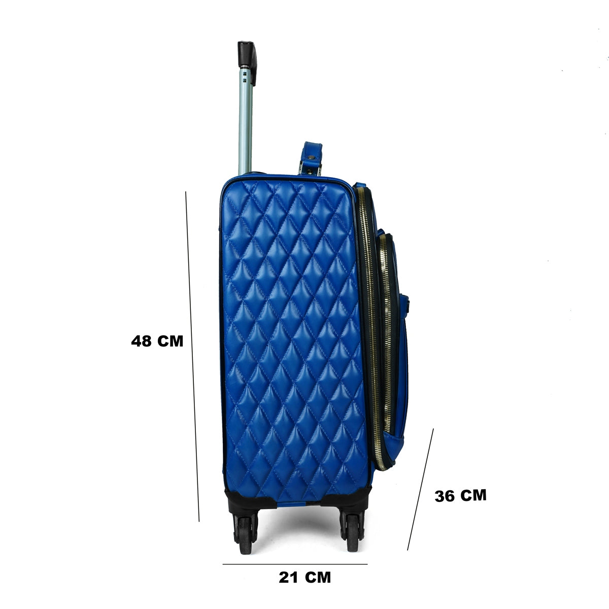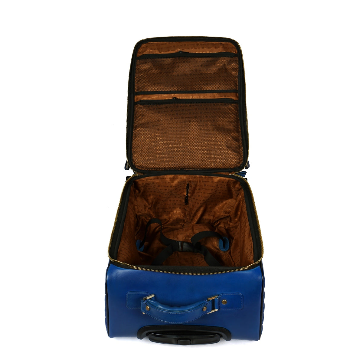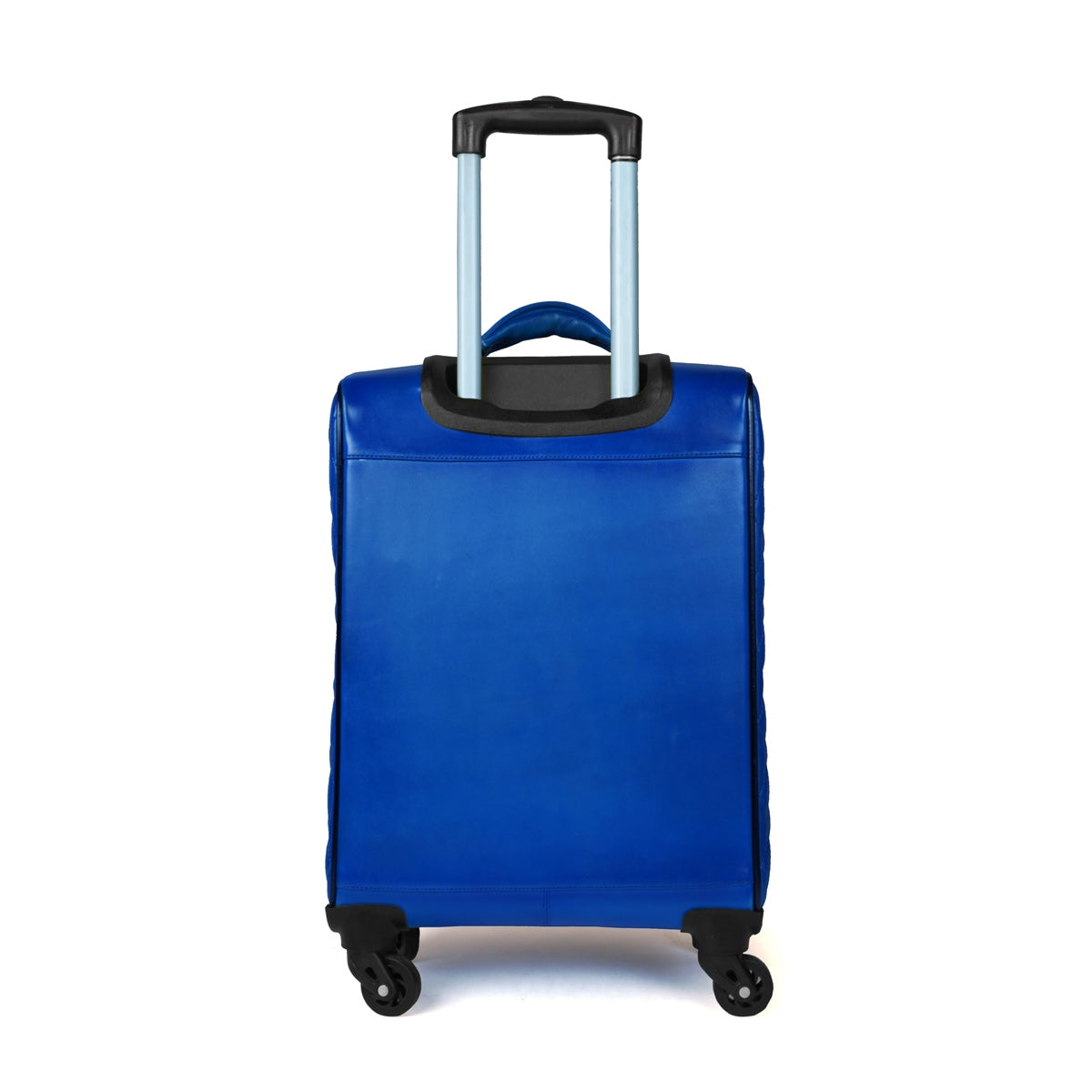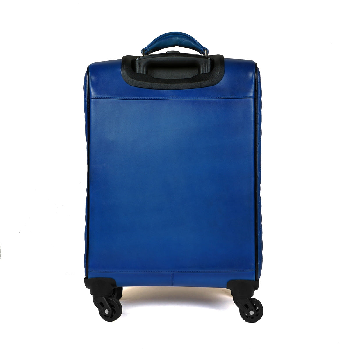Sky Blue Leather Diamond Stitched Quad Wheel Trolley Bag With Embossed Lion Logo By Brune & Bareskin
