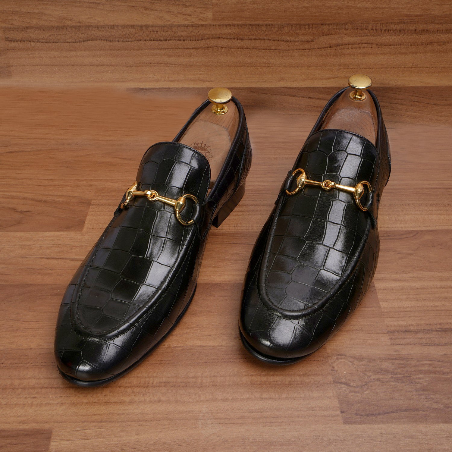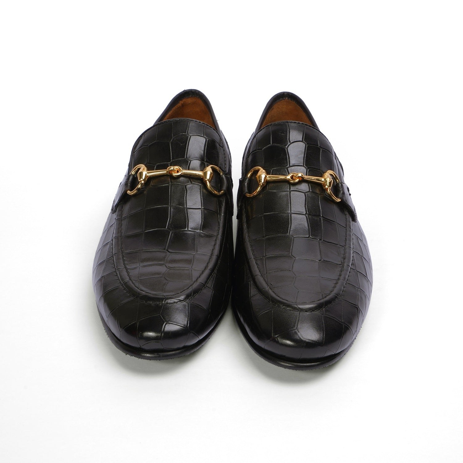 Sleek Deep Cut Croco With Horsebit Detailing Men's Loafer