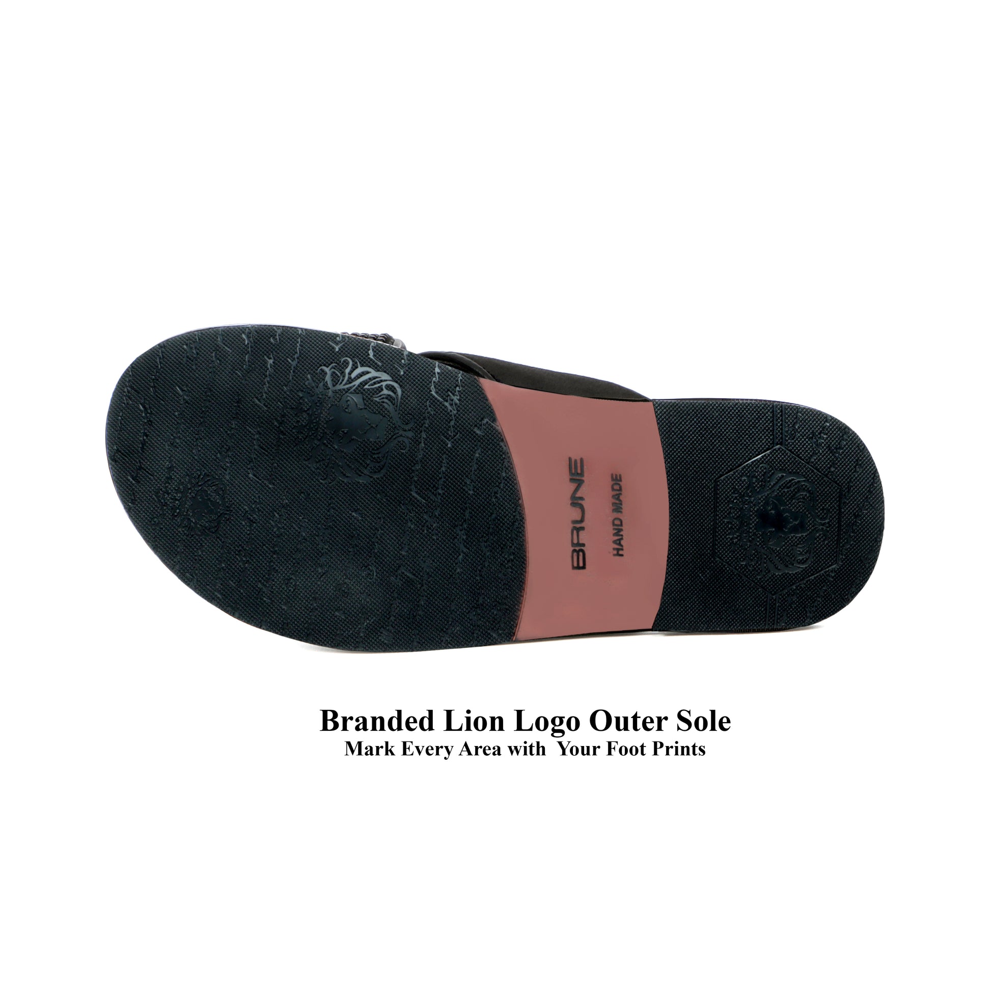 Brune & Bareskin a minimal cross-over style in full-grain black leather & Italian velvet with black beads. These embellished slide-in-slippers are for individuals who like to be well turned-out. The black crystals embellishment makes it an eye-catching footwear. It has an anti-skid rubber base & the outsole with welt-finishing. This chic festive essential will complement a range of looks and occasions whether it's lounging around the house or heading over to a cards party. You can get it made in your favorite color with our bespoke services.