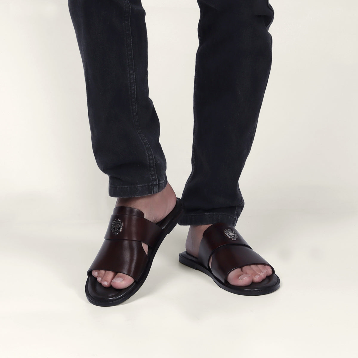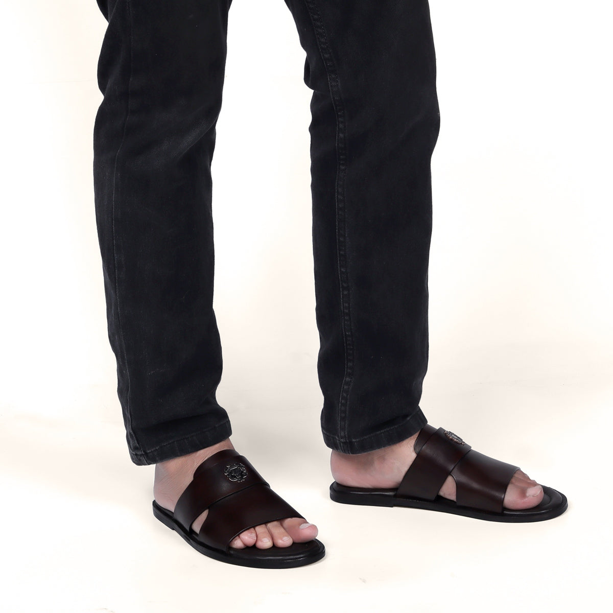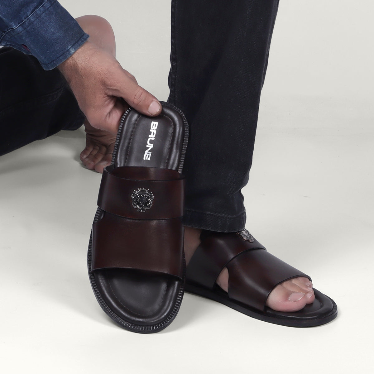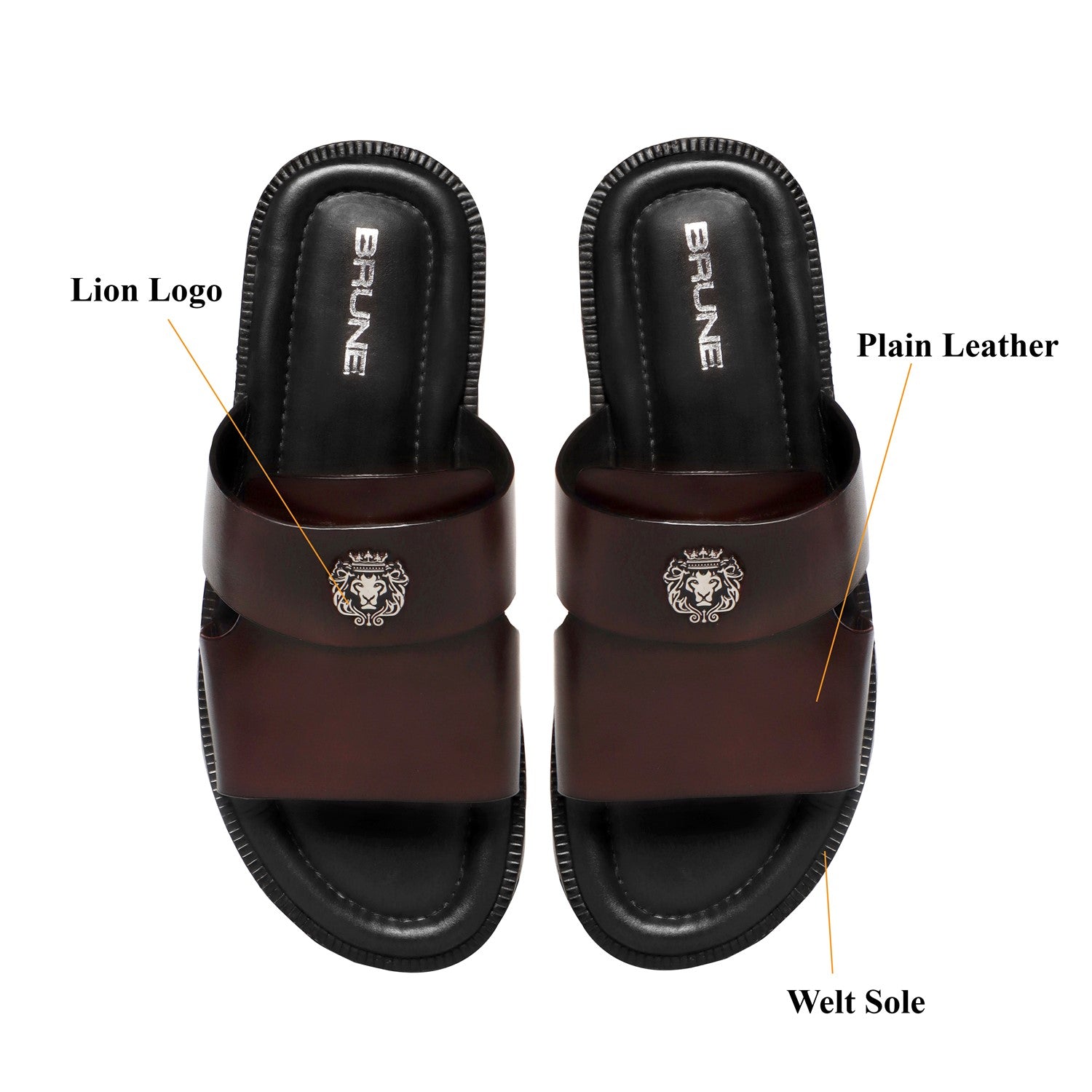 Brune & Bareskin stylish addition to your summer wardrobe, these slide-ins are perfected with broad strap and cut out detail with welt slide. It features the brand’s signature small metal lion logo which further enhances the footwear. Its fitted with a memory foam flat sole that provides comfort and support all day long. Welt finishing is done on the outsole. This footwear can be styled with smart casuals & formals both. Just slip on and go and enjoy the warm weather in style by wearing this pair. Anti-skid rubber outer sole ensures the perfect walking grip. You can get it made in your favorite color with our bespoke services.