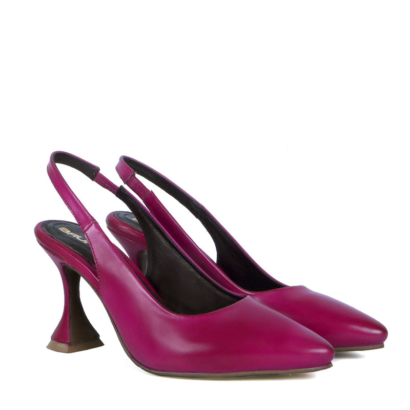 A modern, wearable sling back pumps fluted heel completes the feminine pointed toe design of these Ladies Footwear. Fluted Heel (90MM) from Brune & Bareskin featuring a pointed toe, a high heel, elastic ankle strap and a branded insole. The adjustable ankle strap helps to make it a perfect fit. The subtle black croco textured leather looks amazing.