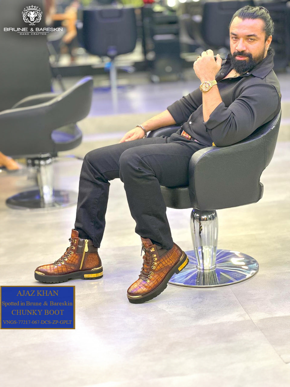 For a unique look with a luxurious feel, these Smokey Yellow Chunky Boots from Brune & Bareskin are a must-have. Hand-crafted from genuine croco textured leather in a smokey finish and lace-up zipper closure, these boots are detailed with a golden metal plate on the toe and heel cap. Comfort and style come together with a chunky rubber sole. A sophisticated and exclusive addition to any wardrobe. The color can also be customized further with your matching apparel.