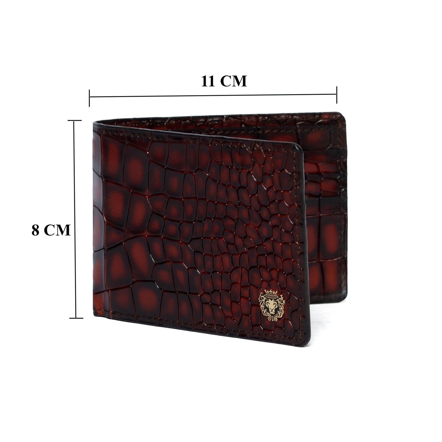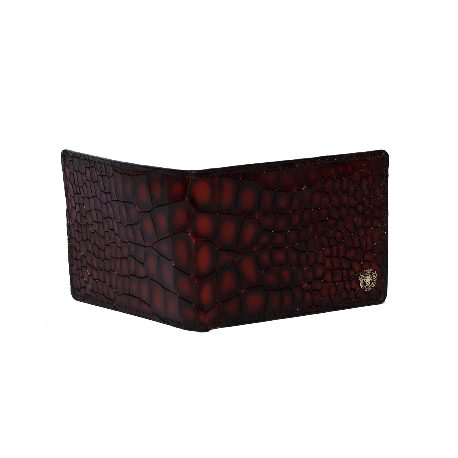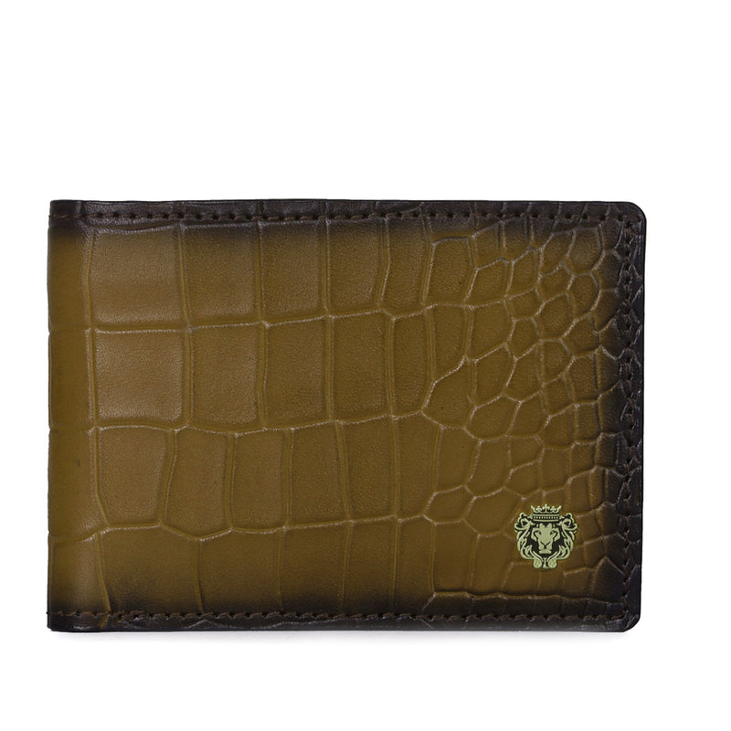 Experience the timeless luxury of this Brune & Bareskin Men's Bi-Fold Wallet. Our Men's Bi-Fold Wallet in Tan Croco Textured Leather is a sophisticated accessory that will instantly elevate your look. The tan color and Croco Textured Leather make this wallet irresistibly stylish, and it's complete with a Smokey finish. The metal lion logo adds a special touch of luxury. This wallet is equipped with 6 card slot and 2 long pockets for cash, making it convenient for everyday use. Perfect as a gift for a special gentleman in your life.