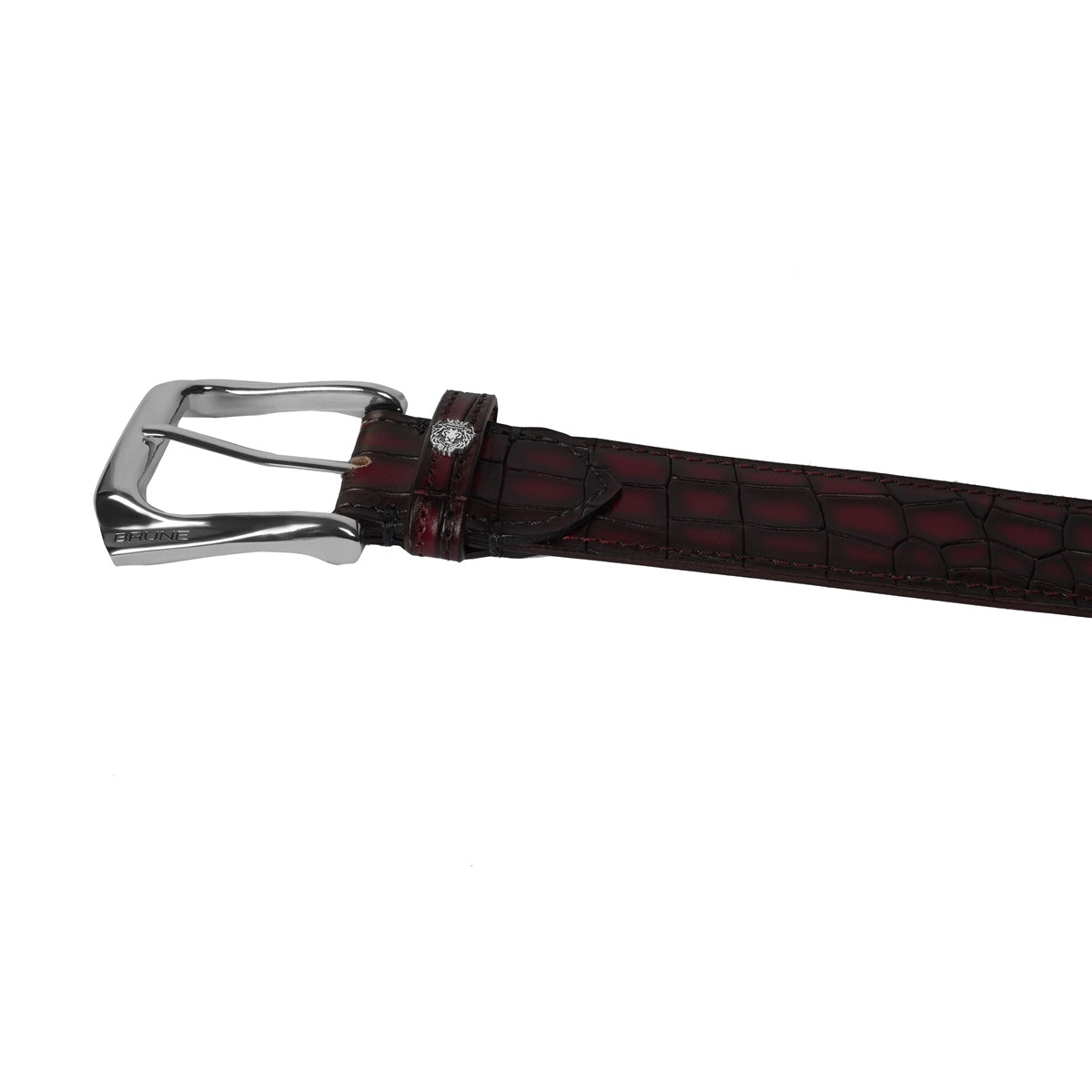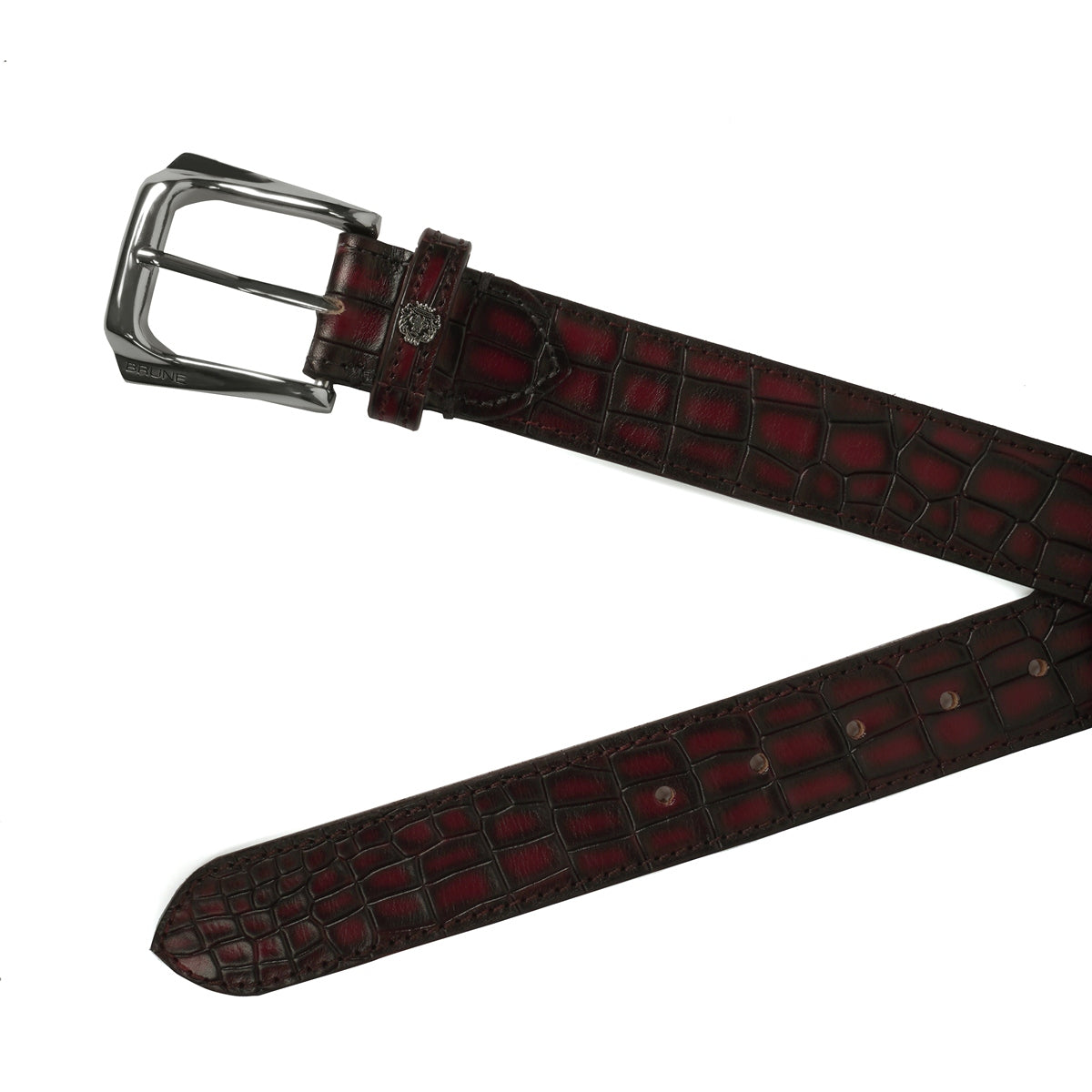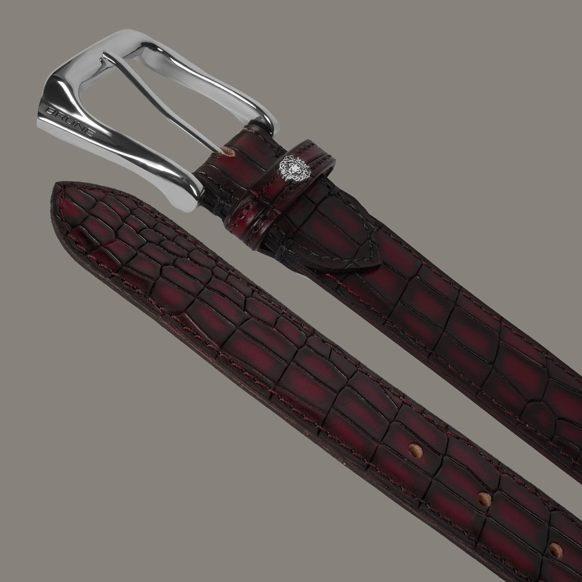 Smokey Finish Wine Belt in Croco Textured Leather Silver Finished Buckle By Brune & Bareskin