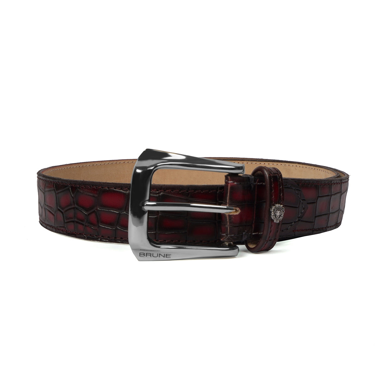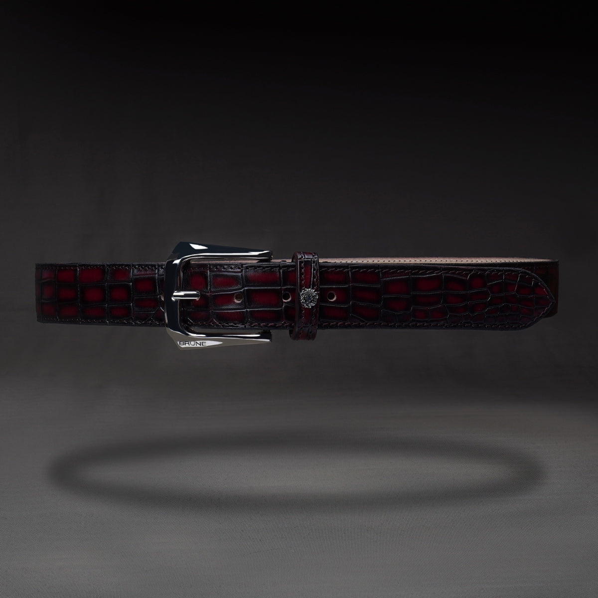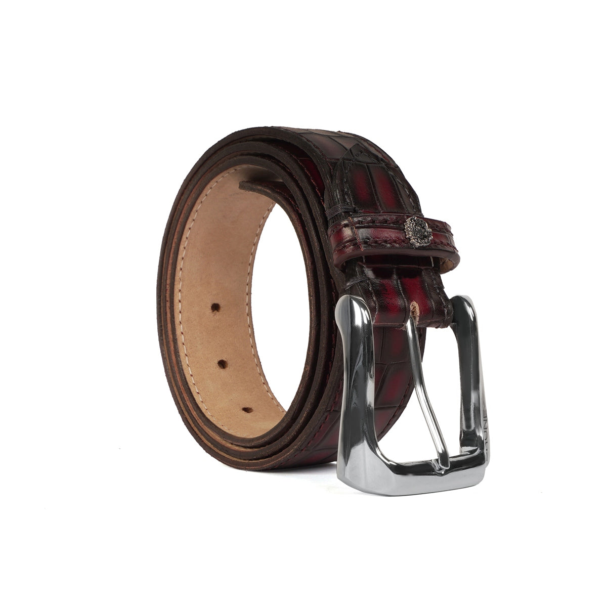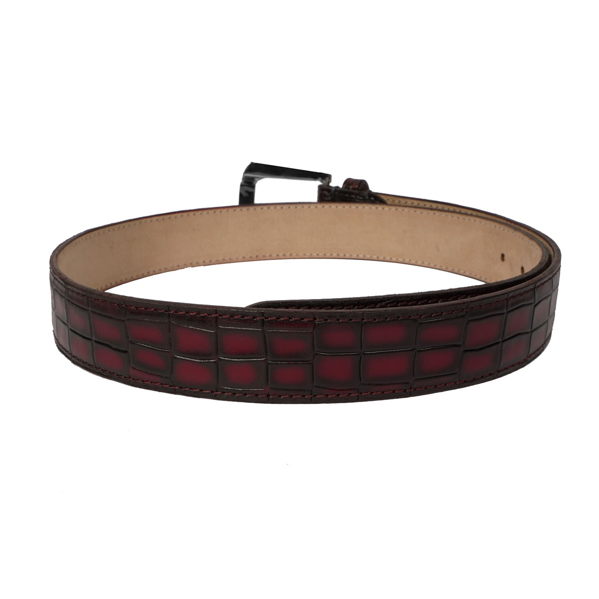 Smokey Finish Wine Belt in Croco Textured Leather Silver Finished Buckle By Brune & Bareskin