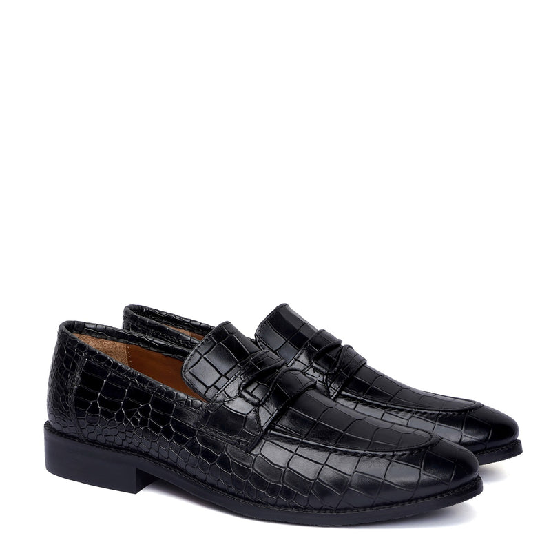 Smokey Finish Mod Look Loafers in Grey Croco Textured Leather with Leather Sole