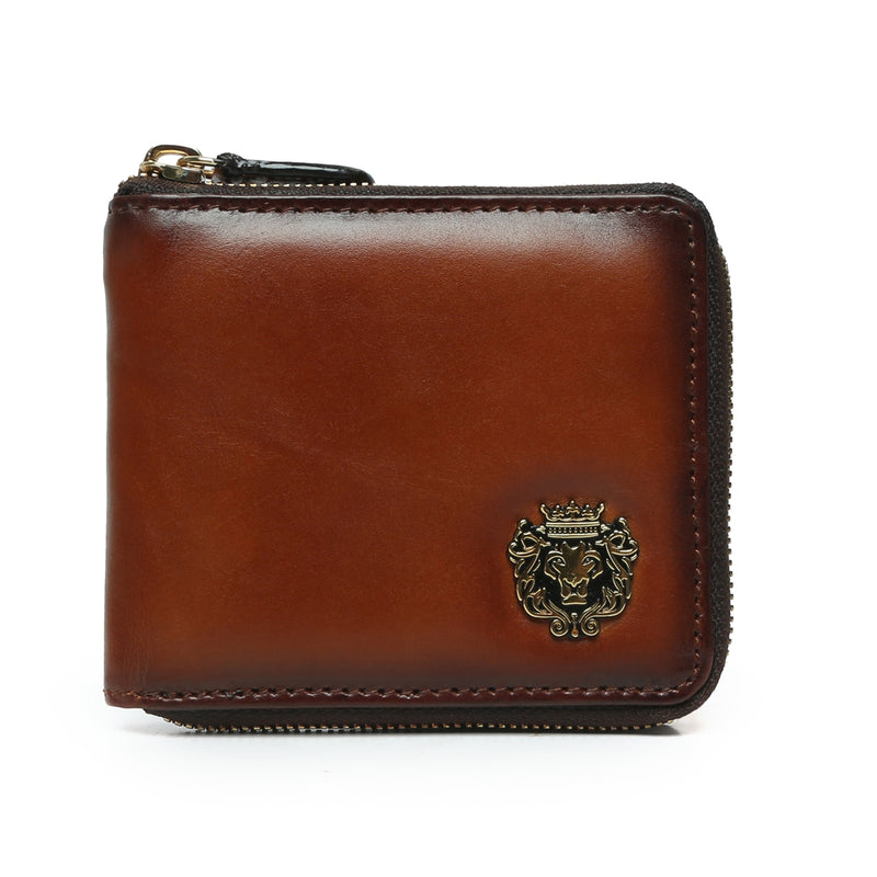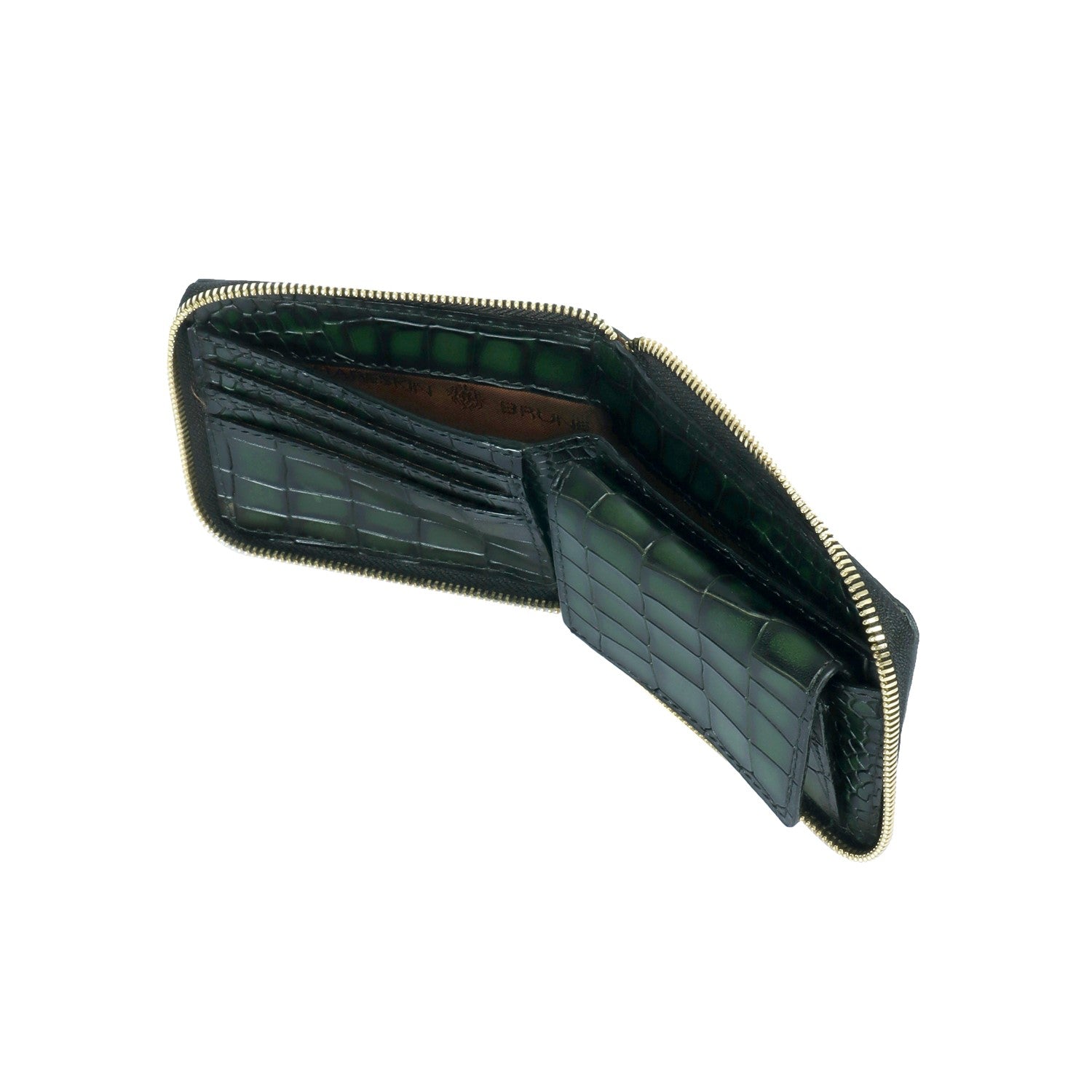 Add some edge to your style with our Smokey Studded Green Wallet from Brune & Bareskin! Hand-crafted with deep cut croco textured leather and adorned with pint-sized studs, this bi-fold wallet features a unique smokey finish. The zipper closure and silver metal lion logo complete the perfect accessory for any outfit.