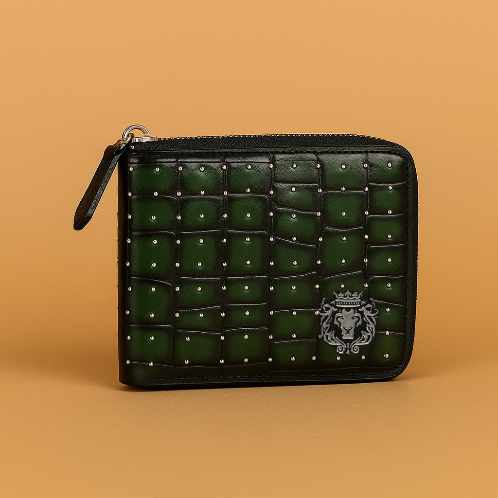 Deep Cut Smokey Studded Green Wallet