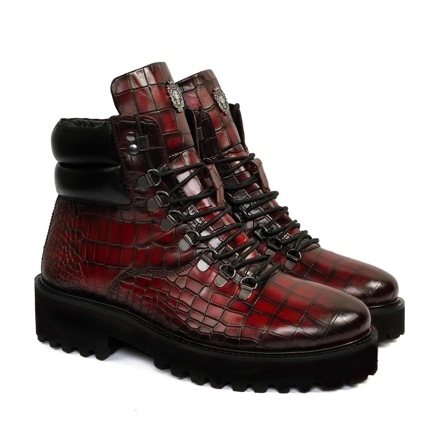 Smokey Wine Croco Embossed Light Weight Biker Boots