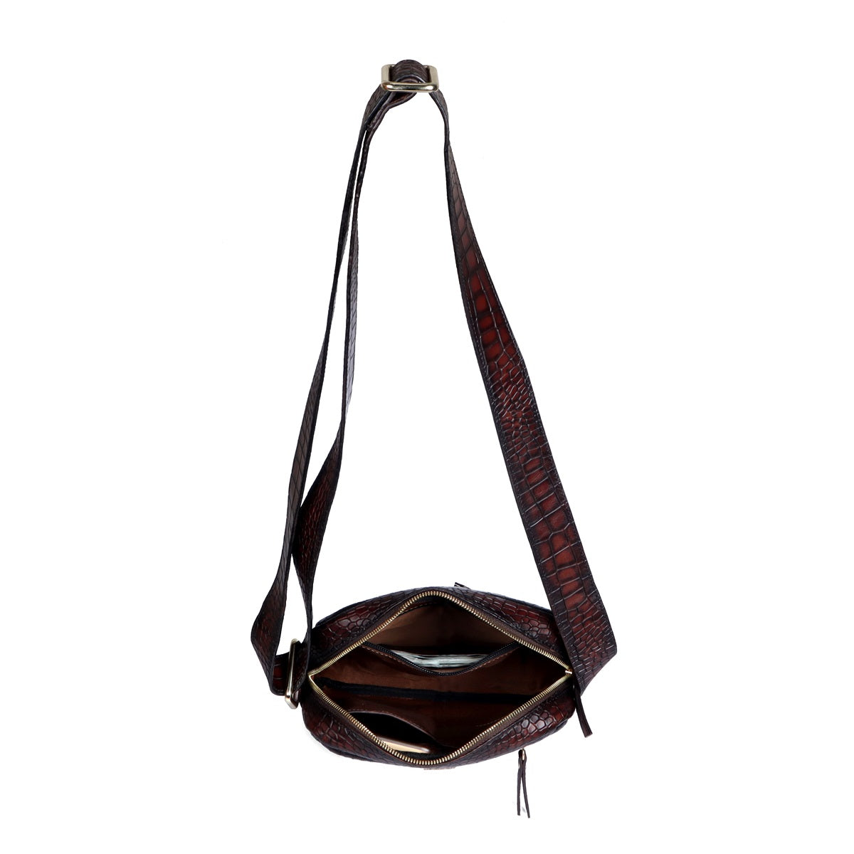 Unisex Smokey Dark Brown Croco Print Leather Multi-Pockets Cross-body Bag by Brune & Bareskin