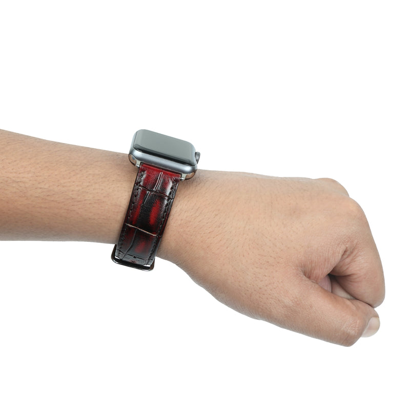 Brune & Bareskin's new input towards exclusive watch strap lovers, It doesn't need more designing as it's revealing classy impact with deep cut Croco leather texture. The hand-finished straps boast a very stylish and luxurious look. Happy to share that one can get a customized watch strap with their choice of color. Adjustable strap for any wrist size or can customize according to your sizing. Include these straps with your casual & formal outfits. These watch straps can get matched with our branded accessories too.