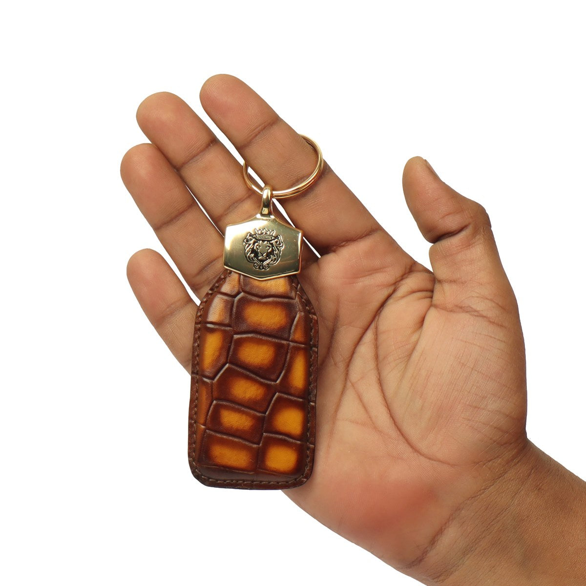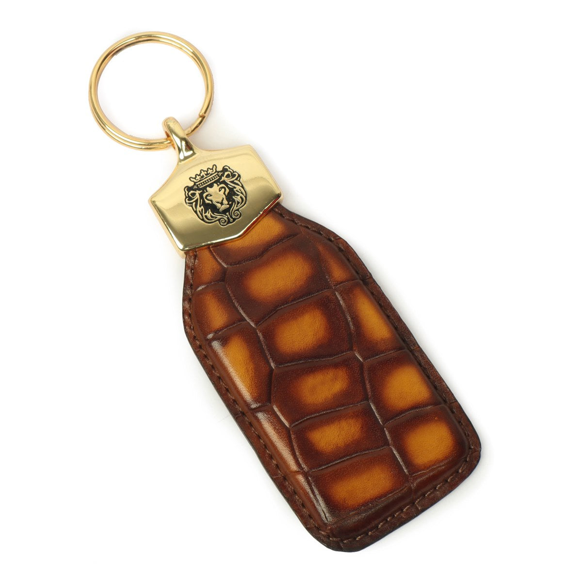 Smokey Yellow Deep Cut Croco Print Leather Large Scales Keychain By Brune & Bareskin