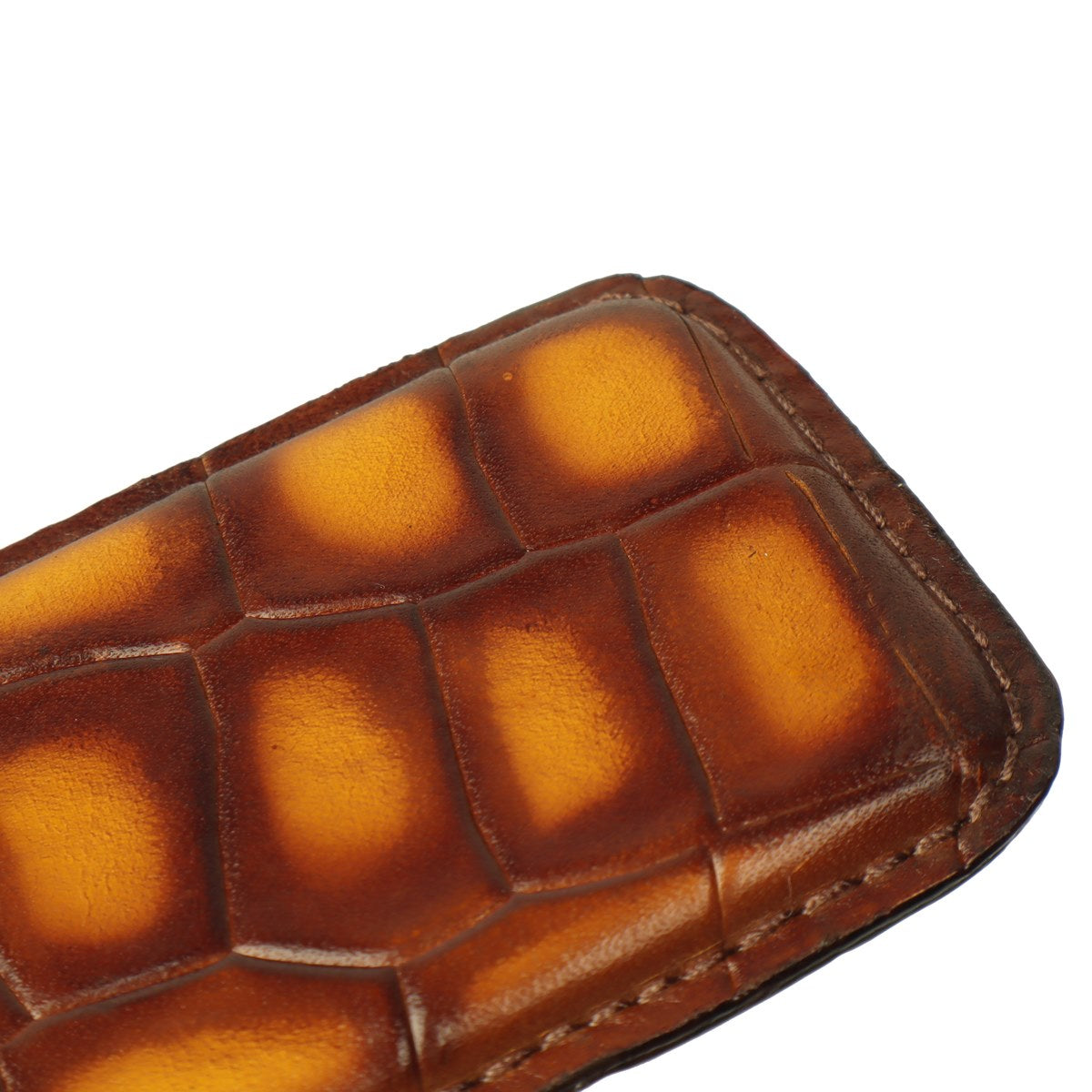 This elegant rectangular shape keychain is a must-have travel accessory. The Smokey Yellow Croco textured deep-cut leather enhances its richness. The golden metal finished fitting compliments its overall color. Brune & Bareskin signature lion logo on the center looks very chic. You can also get it customized especially for you with your name initials and favorite color. When you choose branded by BRUNE & BARESKIN, you are sure to get more than a few glances coming your way.