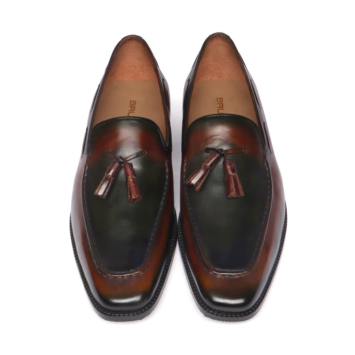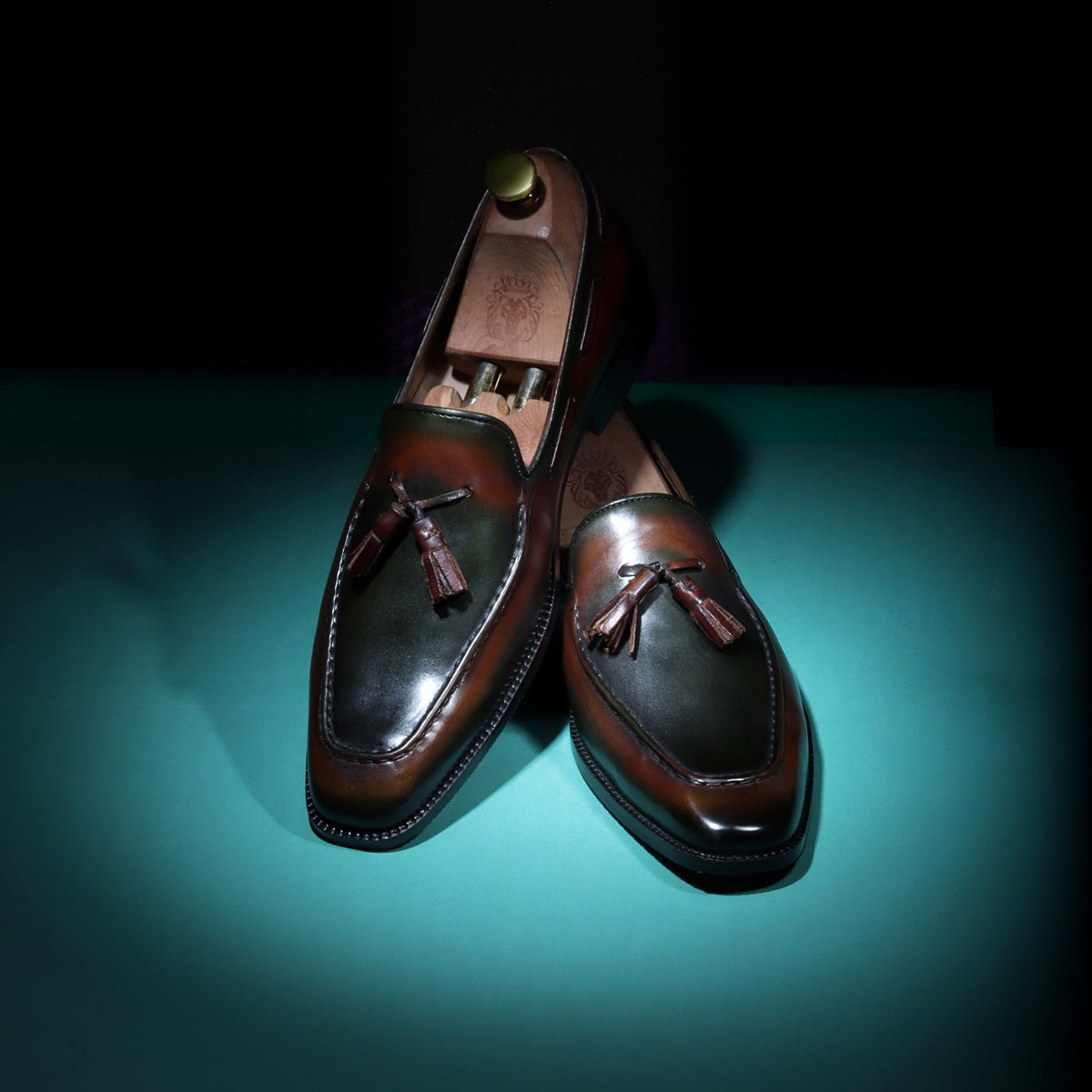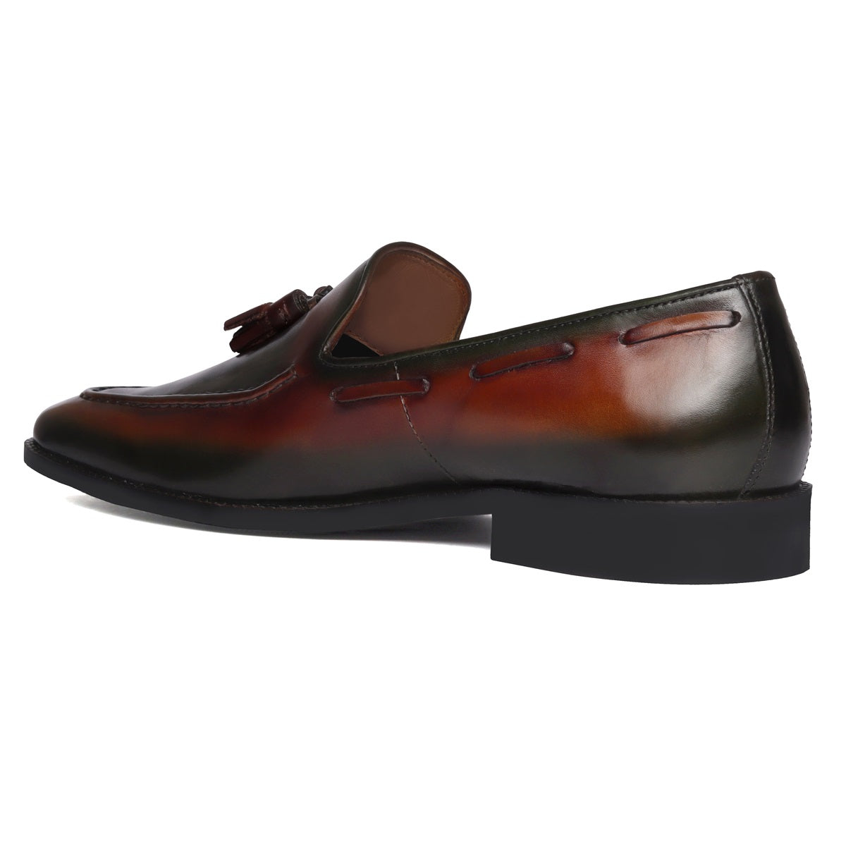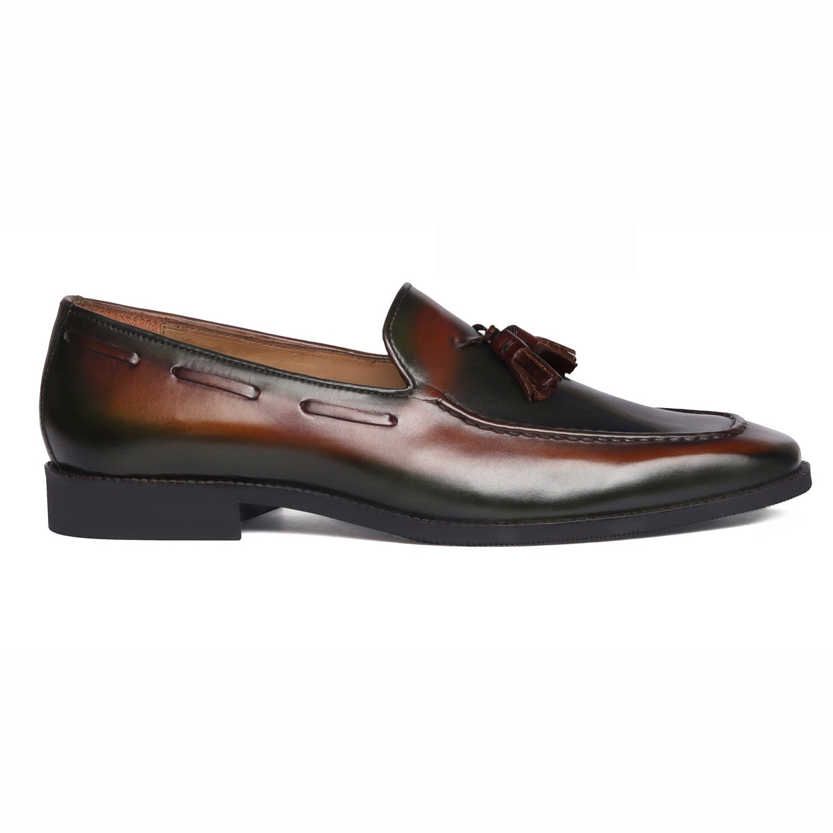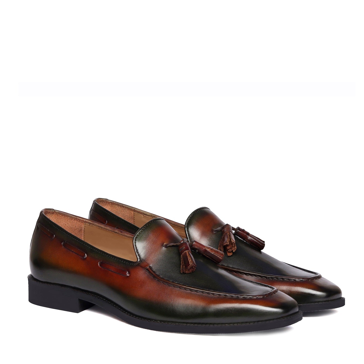 Dual Tone Tassel Shoes in Tan-Green Leather
